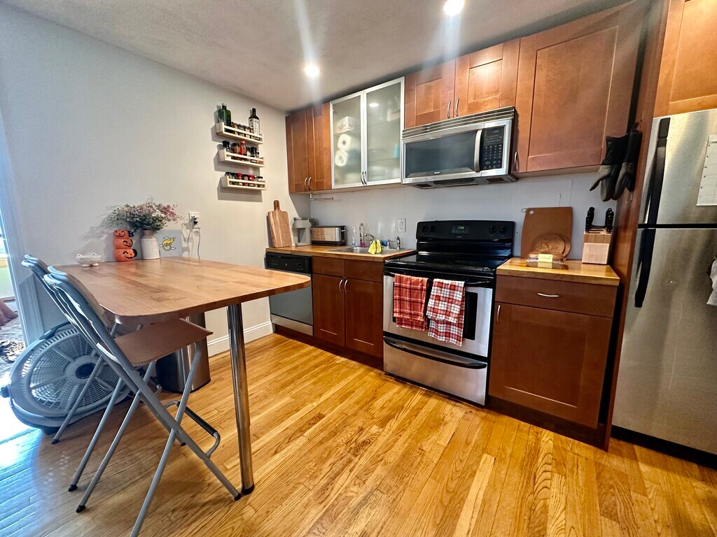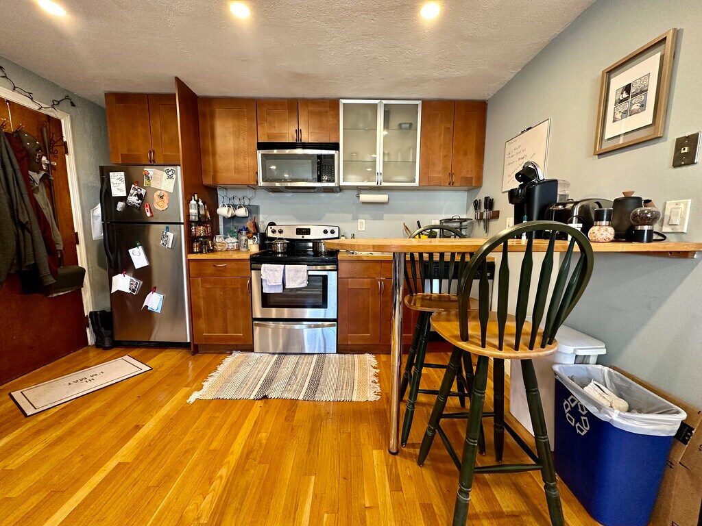 Gorgeous 1 bed in the heart of Allston! Available 9/1/24. Top floor! There are multiple options in the building. Heat and hot water included. Spacious 1 beds with modern kitchens and baths. Stainless steel appliances, breakfast bar, hardwood flooring, and a built in air conditioner. Living room + room for a dining table. Any size bed will fit in the bedroom. The building has laundry in the basement and parking for rent. Located in the heart of Allston the building is a few minute walk from the green line, bus, and dozens of shops/restaurants. Easy walk to Boston University. Quick commute downtown with access to i990 and storrow drive.