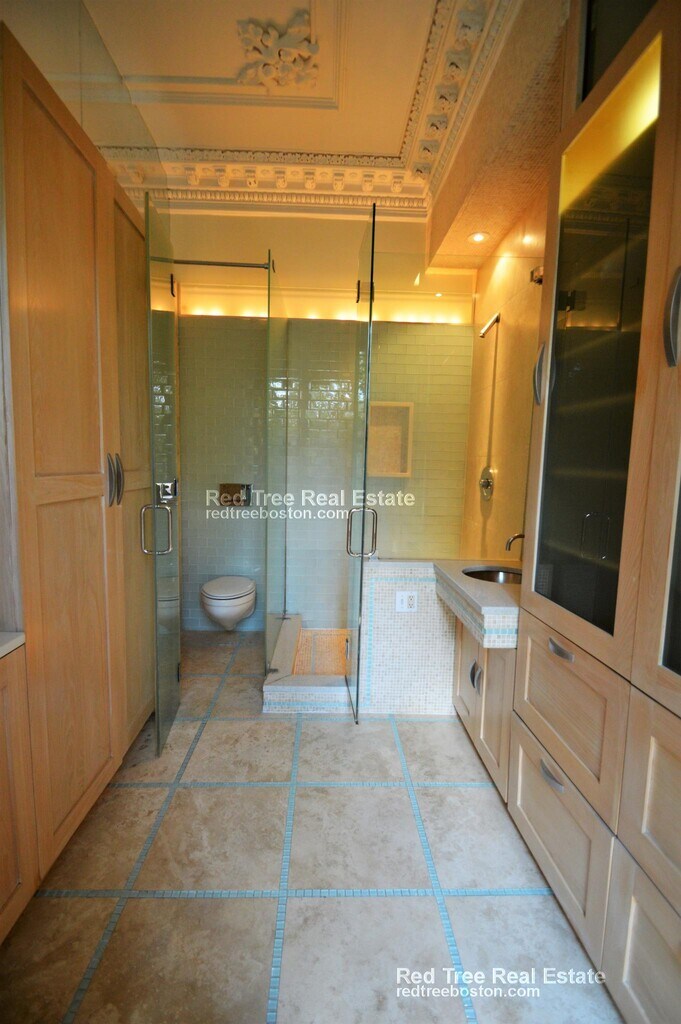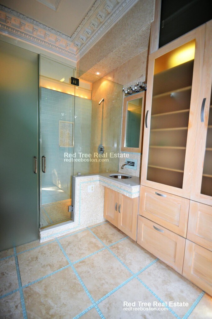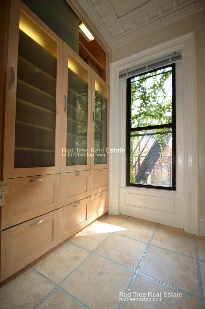 Stunning parlor-level one bedroom apartment in an impeccably maintained building with common areas that are charming and authentic. Double door entranceway into the unit. Gourmet eat-in kitchen with state-of-the-art stainless steel appliances, custom cabinets, and granite counters. Beautifully refinished original pumpkin pine hardwood flooring. Original crown moldings. Large bedroom with white marble mantle fireplace cabinet. Beautifully tiled glass wall master bath with heated floor and dressing room. Large living room has high ceilings and large double hung windows. Living room has beautiful white marble mantle and fireplace wine cabinet. Coin-operated washer and dryer in the building.