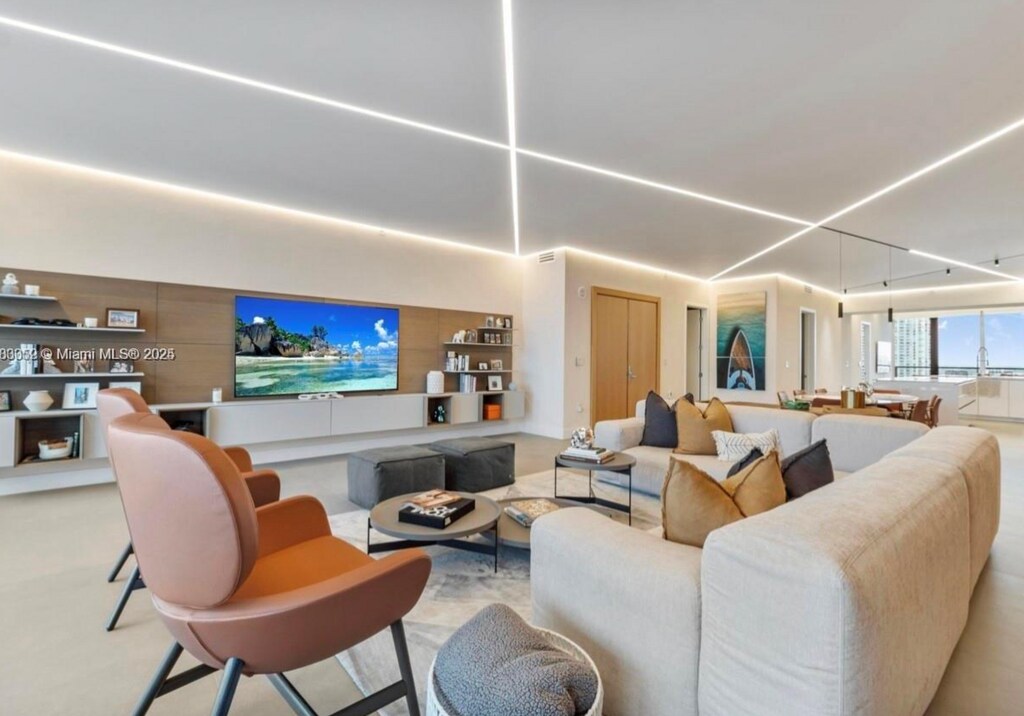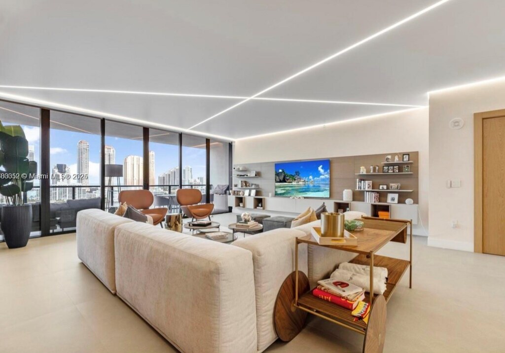 Experience island living in this impeccably furnished flow-through residence at Privé at Island Estates. Boasting 3 spacious bedrooms + a den, 4.5 luxurious bathrooms, & 2,918 SF of modern elegance, home offers east & west water views from every room with Artefacto furniture. Enjoy the privacy of your own private elevator entrance, a fully equipped summer kitchen, & floor-to-ceiling glass showcasing the Intracoastal. The chef’s kitchen features Miele appliances, 2 wine fridges, and sleek custom cabinetry. The residence is outfitted with powered window treatments, in-unit washer/dryer, and two dedicated parking spaces. Residents enjoy access to resort-style amenities, including a private marina, two-story gym, full-service spa, tennis court, on-site dining, & 24/7 concierge.