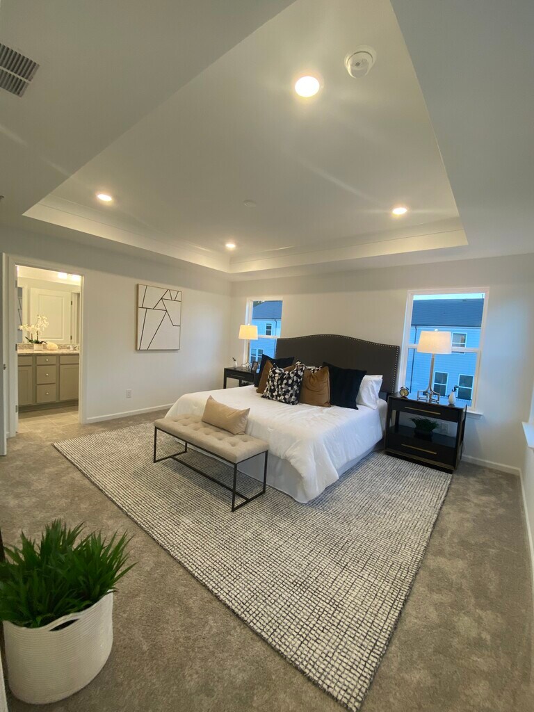 Brand-new home with three floors ready to move in with blinds installed and all major appliances. The first floor has a bedroom with full bathroom & a two car garage with some additional storage. On the second floor, enjoy the beautiful kitchen with cabinets, quartz countertops, and a center island. Home has all appliances like Refrigerator, Washer Dryer, Stove, Microwave, Oven, Dishwasher all brand new. This floor also has the dining room, a living room with a linear electric fireplace, a half-bathroom, and a balcony with a great view to relax. The master bedroom comes with a tray ceiling, a large walk-in closet. The master bathroom has a tiled shower/door and double vanity with raised quartz countertops. Enjoy maintenance-free living here with lots of amenities which include water, Internet, cable TV, a dog park, a tot center, many walking trails & so much more. Very clean and new prime neighborhood, 2-5 mins drive to major stores like Harris Teeter, Trader Joes, Starbucks, CVS, Walgreens and all major Restaurants and fast foods and 10 mins drive to IKEA and UNC Charlotte. Very easy access to Uptown Charlotte, highways and many other entertainments. Tenant is only going to pay the electricity & Gas bill. Water, internet and cable bills are covered in HOA. Furniture is not included.