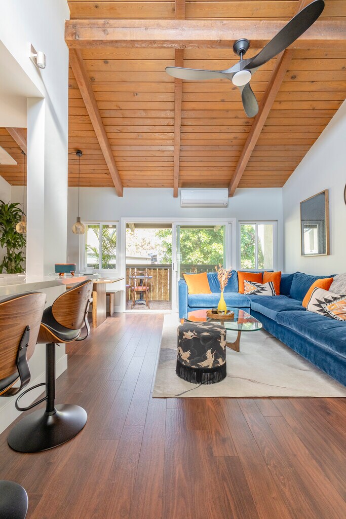 Unique 852 sqft top-floor 2B1B private condo in a secured community. Walking distance from Culver City Downtown and Baldwin Heights Scenic Overlook, within close proximity to Venice Beach, Santa Monica, and LAX. This contemporary luxury condo epitomizes the pinnacle of refined living. Newly remodeled, this condo is a testament to meticulous craftsmanship and unparalleled opulence. The home is bathed in abundant natural light, distinguished by soaring ceilings, and adorned with gleaming hardwood floors. The heart of the home is a gourmet chef's kitchen, replete with top-tier appliances, and has an open inviting connection to the dining and living space. The outdoor and security-protected community is comprised of an enchanting sanctuary, featuring two pools, a jacuzzi, a sauna, lush turf, and a charming playground. Enjoy a seamless keyless entry, in-celling speakers throughout the condo, and smart home Lutron lighting throughout the space. The home has ample closet space, a balcony with its own storage space, new and soundproof windows, an AC in the living room, and new ceiling fans throughout. 2 dedicated covered parking spaces are available, tandem. No smoking allowed, no pets allowed. The renter pays electricity while the owner pays water, trash, internet