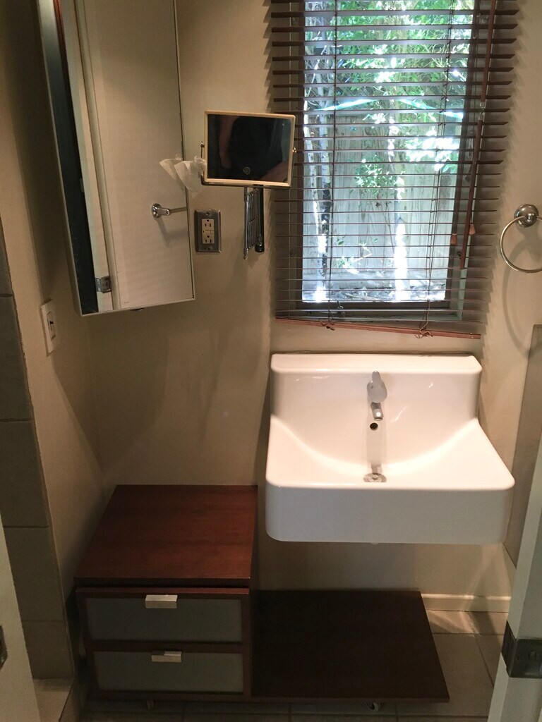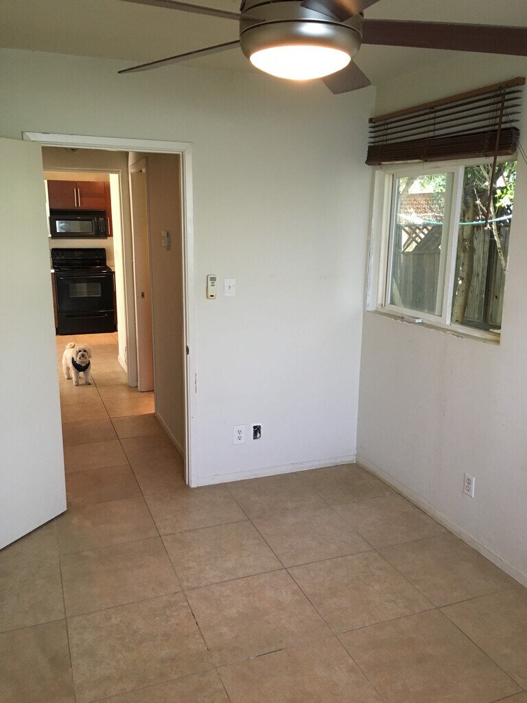 Small one bedroom very private three unit building quiet off street parking walk to downtown Palm Springs tile floors washer and dryer hook up great for a friendly dog or cat no loud noise good rental history the square footage is estimated