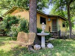 Once a popular B&B, this cluster of four small houses has now transitioned into long term rentals. This house is available October 1st, 2025. The houses are situated in a slow bend of York Creek with beautiful views of the rock bluff on the opposite side of the creek. The compound is nestled in a lush, tree covered yard area settled on the inside of the bend. To the west of the fenced yard are approximately 6 acres of beautiful, cleared bottomland (9.676 total acres). Pets are welcome! The house does include access to a storage area, large garden, greenhouse, and rainwater collection. Starlink has also been installed with speeds upwards of 200mbps! Quiet, peaceful setting, looking for a like minded renter. Located between Wimberley and Kyle, convenient to Austin and San Marcos.