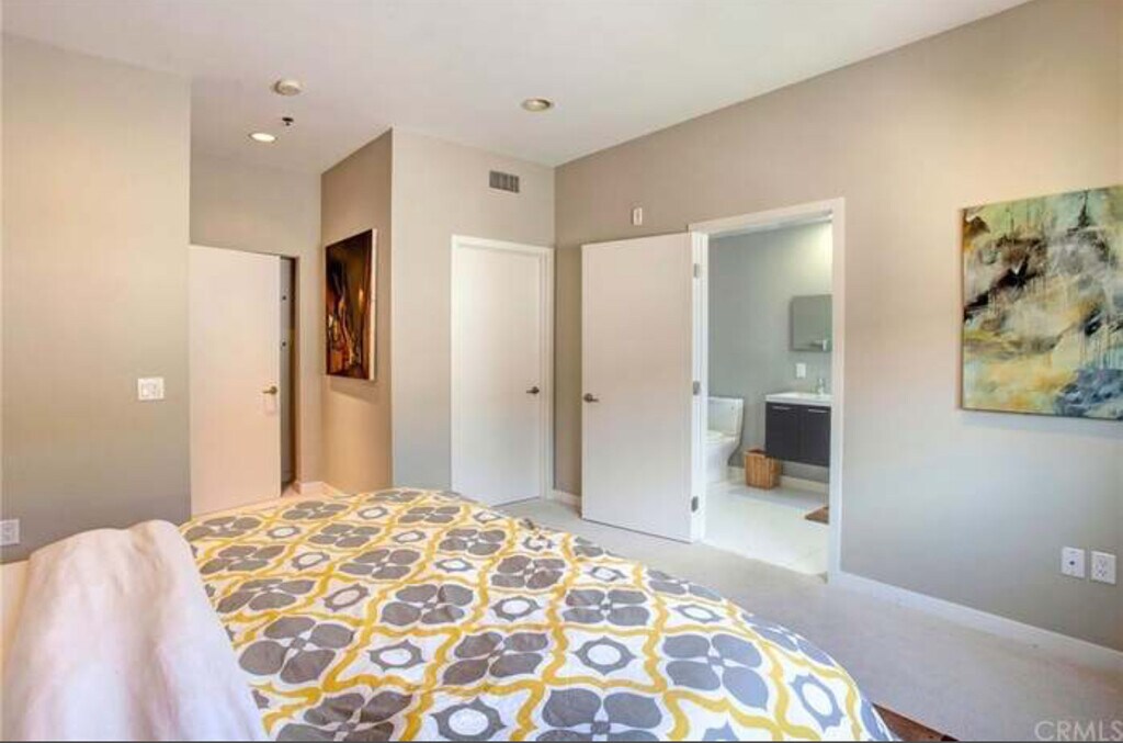 Located in the Noho Arts District! Located on the top floor without any neighbors above you. This contemporary condo has an open floor plan with dual master bedrooms and 2.5 baths will have you asking how to apply! Hardwood floors throughout, designer kitchen with quartz counters, tile backsplash amd stainless appliances. The open dining and living room area have recessed lights throughout. The Master bedroom had huge walk-in closet, en-suite master bath with modern vanity and dual sinks. Second master also had en-suite master bath with modern vanity, walk-in closet and tons of light! Washer & dryer IN UNIT, and an additional half bath room for guests. There is a Private gym in the building, 2 car gated parking and plenty of gated guest parking. Minutes from coffee shops , metro lines, restaurants, and freeways! Water and trash included.