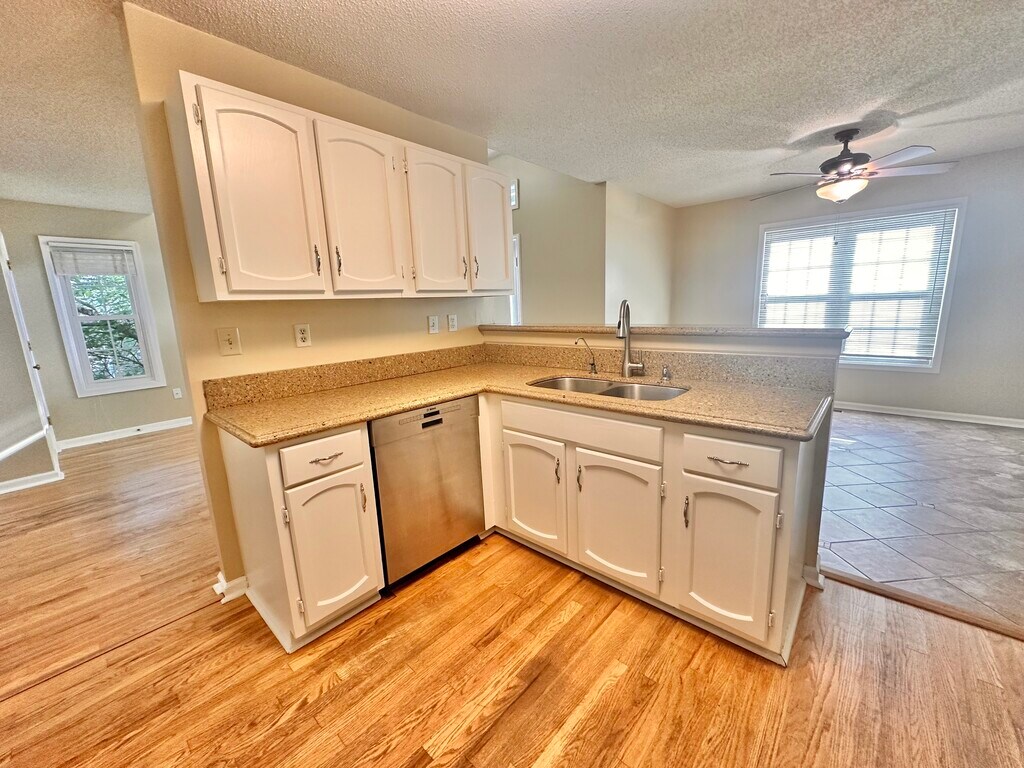 Spacious 3-Bedroom, 3-Bath End-Unit Townhouse with Exceptional Storage. Open House Saturday 10/11 from 2pm-4pm Newly painted throughout, this bright and inviting 3-bedroom, 3-bath end-unit townhouse features a dramatic two-story foyer and hardwood floors on both levels. Large windows fill the home with natural light. Exceptional Storage: Attached garage with extra room for gear, bikes, and seasonal items. There is even room for a motorcycle or canoe in addition to a car. The extra area in the garage includes 4 quad electrical outlets to supply power, if you want to have a workbench and tools or a hobby area. The walk-out basement has an extra room that is separate from the garage area with extensive storage space ideal for keeping belongings organized, and roomy enough to set up a workout area, hobby space, or game room. The kitchen has quartz countertops, all stainless-steel appliances, and an impressive amount of storage including TWO pantries. A new Bosch dishwasher adds a modern touch. The primary suite offers granite countertops, his-and-her closets, and a private ensuite bath with an extra linen closet and built-in storage drawers. The second bedroom also features its own ensuite bath with a granite countertop and a linen closet, providing comfort and privacy for family or guests. Enjoy a cozy fireplace in the living room, energy-efficient double-paned windows, newer siding, and a high-efficiency HVAC system with a whole-house filter a great benefit for allergy and asthma sufferers. Total living space is approximately 1,650 sq ft PLUS the generous basement storage area. Additional highlights: A short 3-minute walk to the Silver Comet Trail. Private-feeling deck with space to grow herbs. The yard has room for a garden if you wish. Quiet neighborhood in a good school district. Lawn care is included, so you can enjoy the yard without the maintenance. No pets, no smoking, no vaping. Similar homes for rent in this neighborhood do not have the same amount of storage, a third bedroom or included lawncare. You will never have to cut grass or rake leaves. Includes lawn care.