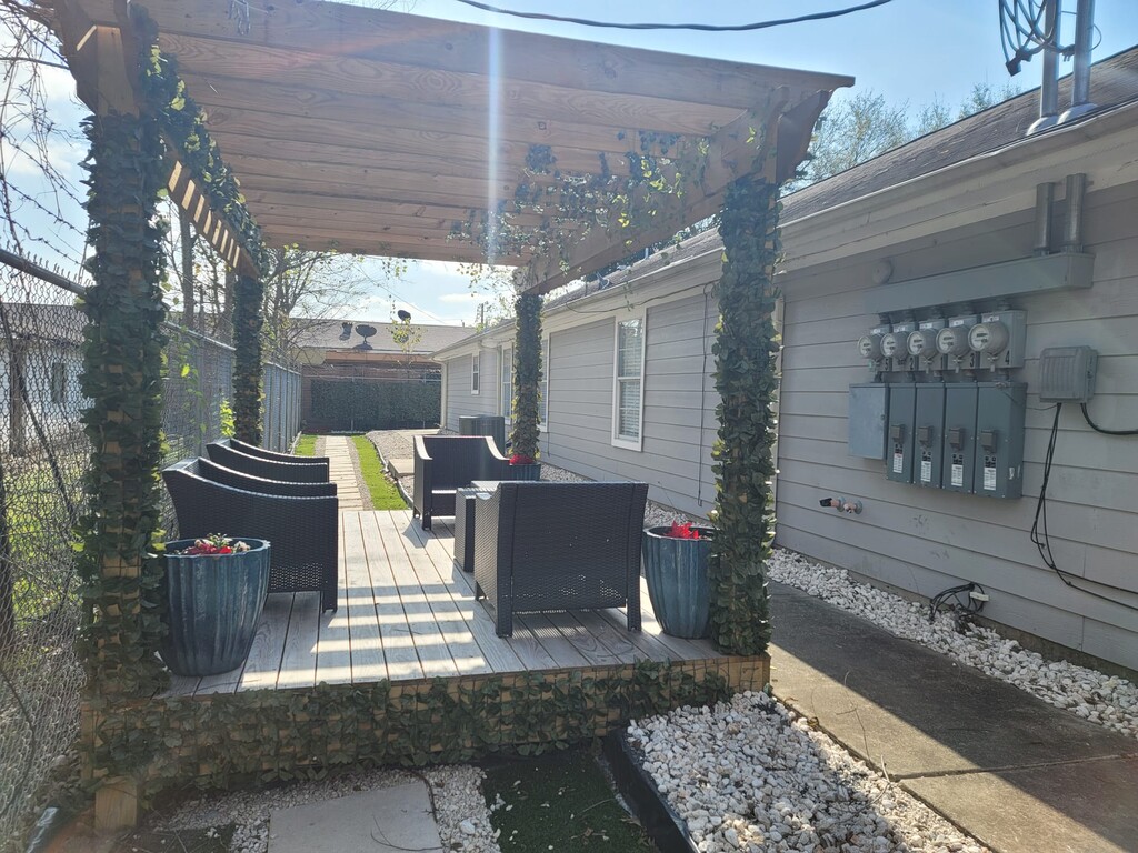 Newly constructed 3 bedroom, 2 bathroom home with free parking located in a quiet neighborhood. Fully furnished unit with upgraded security. the property is located 10 minutes from Texas medical center, NRG and 15 mins drive from downtown Houston.