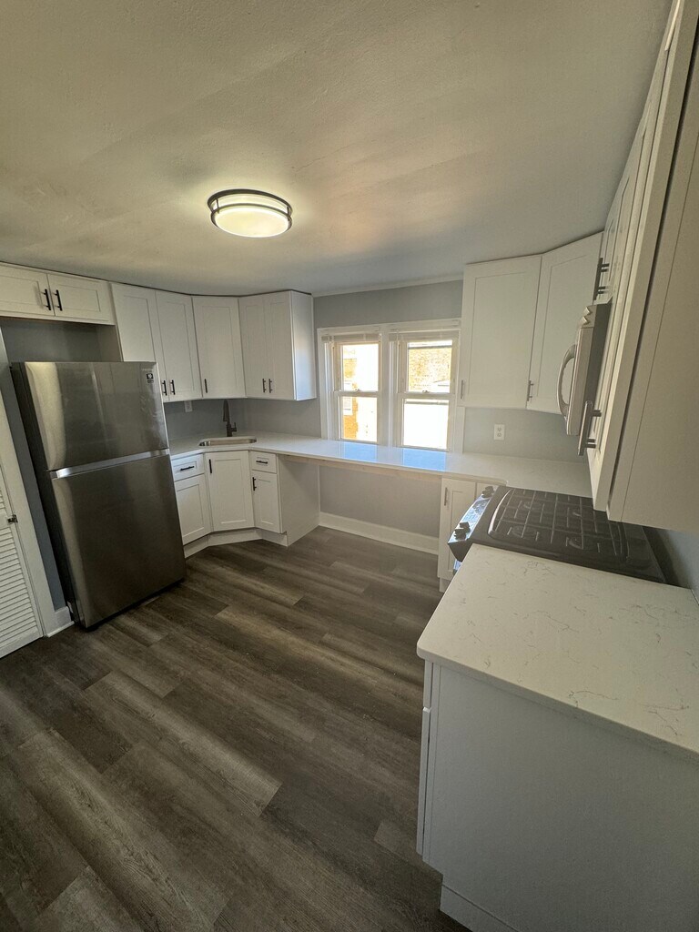 AVAILABLE NOW--NEWLY REMODELED 3bed 1bath apartment on quiet one way residential street in Portage Park. Brand new Kitchen countertops and cabinets. Two LARGE bedrooms with a smaller third. Close to Six Corners, and walking distance from Chopin Park. Washer & Dryer free and in building. Brand new stainless steel appliances. Owner pays water, sewage, and trash. Tenant pays for all other utilities (electric, gas, internet, etc. ). No smoking allowed. One time move-in fee of $500 due at signing. Pets are allowed for a one-time fee. Tenant pays for gas, electric, and internet.