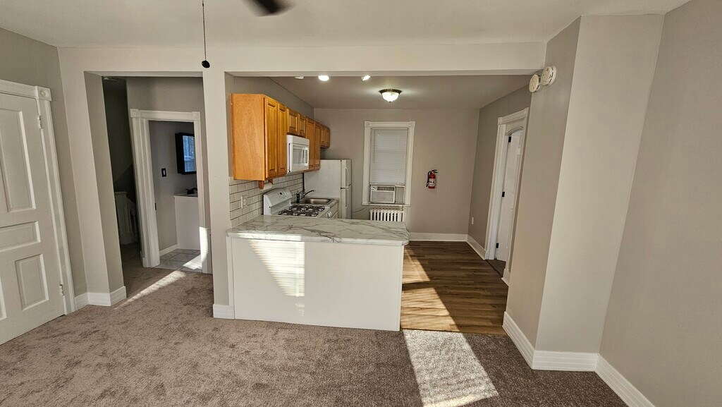 This is a second/third floor apartment located at 5040 Washington Ave in Pennsauken New Jersey. It has three bedrooms and one bathroom including a large bedroom located on the 3rd floor. Apartment has been newly renovated with new counters, carpet and washer/dryer.