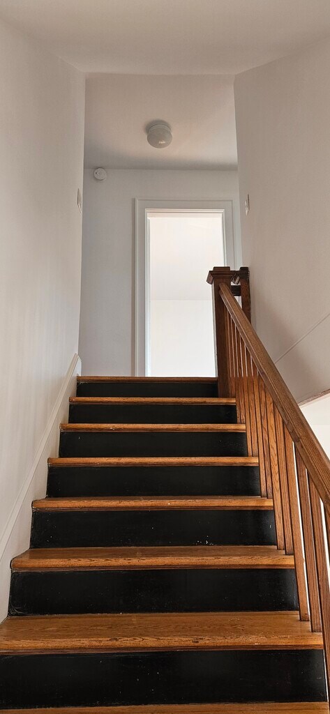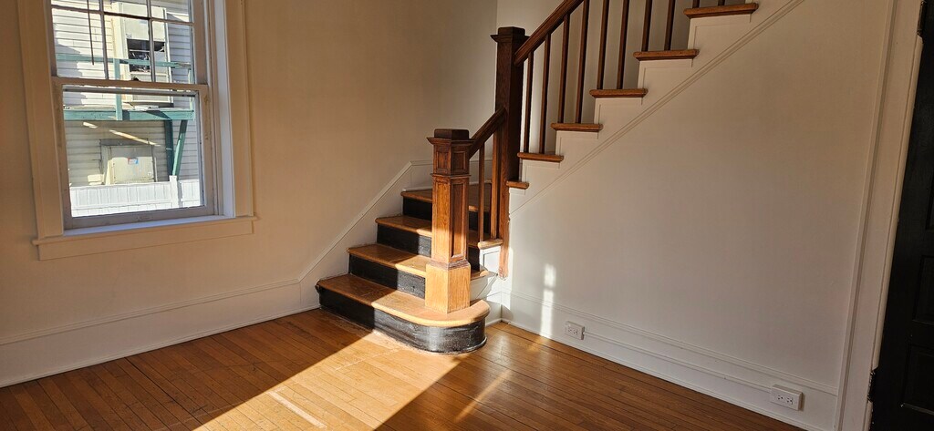 Welcome to this bright and spacious two-story apartment in a beautifully maintained historic home just steps from downtown Charles Town. Featuring gleaming hardwood floors, tall ceilings, and plenty of natural light, this 3-bed / 1-bath unit offers classic charm with modern convenience. The main level includes a comfortable living area and an open kitchen with oak cabinetry, full-size appliances, and in-unit laundry. Upstairs, the large bedrooms provide a quiet retreat with generous closet space. Upstairs once more is a wide open finished attic space great for storage or a play room. Enjoy a private entrance, efficient baseboard heating, and easy street parking. Conveniently located near restaurants, shops, and commuter routes this inviting home blends old-world character with everyday comfort.