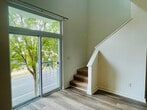 Great open loft light-filled condo in downtown Durham! Newly renovated first floor including new wide-plank premium LVP wood-grain flooring, soft-close cabinets, and dishwasher. Carpeted primary suite on second floor with views of downtown skyline. All appliances (fridge, dishwasher, stove, microwave, washer/dryer) convey. Small pets allowed. GFiber ready. Available immediately. This is a great space for an individual or couple looking for an urban/walking lifestyle. 5-10 minute walk from major downtown locations like Motorco, the Carolina Theatre, Little Bull, the Parlour, the farmers market and more. A few minutes more gets you to Mezcalito/Ponysaurus or the Durham Bulls ball park and American Tobacco. The building is home to Vessel coffee shop for easy access to your caffeine fix! Large sliding door with screen opens to allow plenty of air flow, if desired. Huge windows on the upper floor let in lots of light, but also have a thermal shade to keep the space cool. Unit is above a retail space and occupies the 2nd and 3rd floors of a 3-story building, so no upstairs neighbors! 1-year lease preferred, willing to discuss longer lengths and maintaining same rent for multiple years. Rent includes water and trash. Renter handles for power, internet, parking. Street parking is readily available (plenty of spaces near the building, metered during normal business hours, free overnight and weekends). City parking in a deck is available a block away.