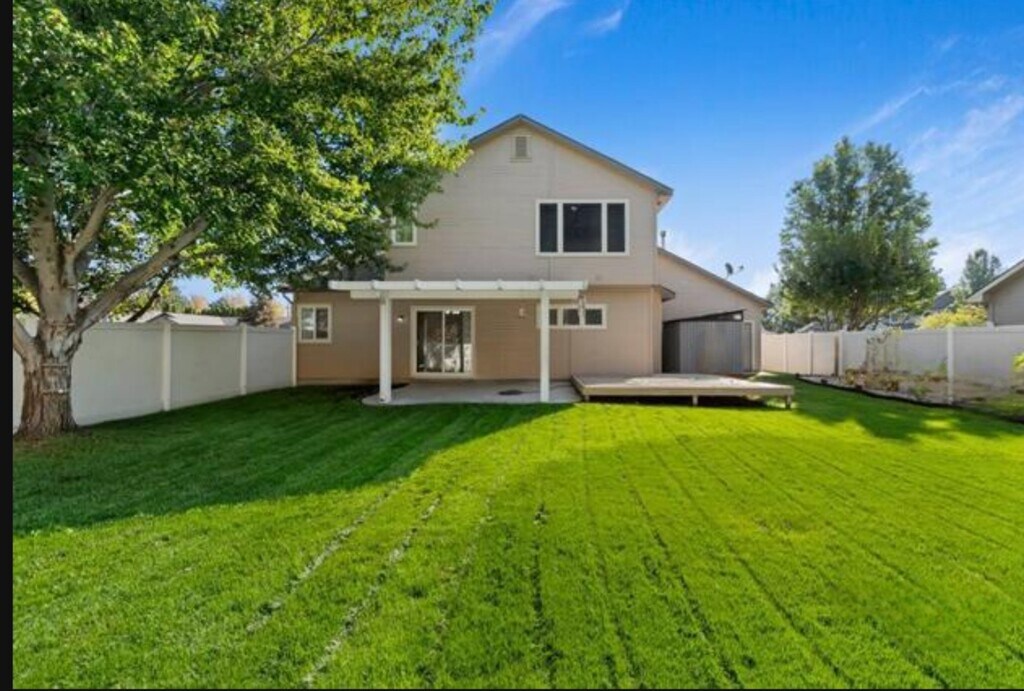 Light and bright 4 bedroom home situated on a large corner lot in Kelly Creek subdivision of north Meridian. Open concept kitchen, dining, and family room offer ample space for gatherings with low maintenance LVP flooring. Additional bonus living space, office/4th bedroom, large master ensuite, with tub and separate shower, walk-in closet all upstairs along with 2 more bedrooms. Large fenced yard features covered patio, raised garden boxes and 3 fruit trees. Mature trees provide shade in the summer and filtered light in the winter. Great schools - Rocky Mountain HS within 1 block. Shopping - Costco, Winco, Meridian Library, restaurants, close by and easy access to I-84. Home is available 11/1/25. Initial lease is thru 4/30/26 with opportunity to renew for an additional 12-month lease. Income required is 3 times rent and minimum credit score of each occupant 18 and above, is 685. Good job and rental history of at least 2 years.