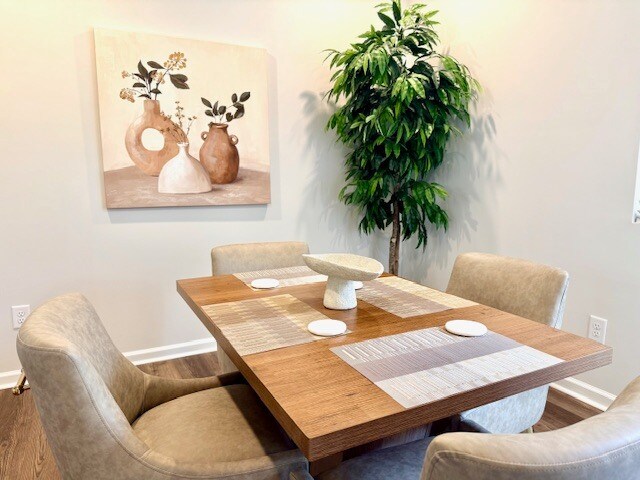 FULLY FURNISHED BRAND-NEW three-story luxury townhome offering flexible lease terms in a prime Apex / Holly Springs location, with ALL UTILITIES INCLUDED. Thoughtfully upgraded throughout and designed for modern living, this turn-key home is ideal for professionals, relocations, and extended stays. The top level features two spacious bedrooms, each with its own private en-suite bathroom and walk-in closet, plus a conveniently located laundry room with washer and dryer. The luxe owner's suite includes a large 65" Smart TV and serene wooded views, creating a peaceful retreat. On the second floor, enjoy an open-concept Great Room with another 65" Smart TV, a fully upgraded chef's kitchen with oversized island, and a dining area arranged in a modern layout that flows effortlessly for everyday living or entertaining. A convenient half bath is also located on this level. Step outside to the walk-out deck overlooking lush, landscaped wooded views. 1st floor encompasses a third bedroom suite, offering an exceptional level of comfort and privacy. It features a full bath, walk-in closet, a large 65" Smart TV, and a private back door that opens up to the serene wooded backyard. Nestled between the towns of Apex and Holly Springs, this home is perfectly situated for personal or professional stays. Convenient to UNC Holly Springs, and major pharmaceutical and IT hubs including Amgen, FUJIFILM Diosynth, and other life-science campuses. Enjoy close proximity to major shopping, supermarkets, restaurants, top-rated schools, universities, recreational facilities, greenway trails, and both Harris and Jordan Lakes. Easy access to RDU Airport (approx. 20 minutes) and quick connections to Raleigh, Durham, Chapel Hill, Cary, Holly Springs, and Fuquay-Varina. Community amenities include a resort-style amenity center with seasonal outdoor pool and splash zone, fitness center, tot lot, volleyball court, sports court, and fire pit and more. Included in rent: Fully furnished Utilities High-speed internet HOA Dues EV charging 1-car garage, driveway + street parking Minimum 90-day lease. Flexible terms available. Ideal for professionals, corporate relocations, and extended stays. More pics coming soon. Being newly furnished. Owner pays for all utilities (electric, gas, water & trash pick up), HOA, dues & HI speed WiFi. EV charging fee $50/month additional (negotiable) ABSOLUTELY NO SMOKING/VAPING on premise! Please respect quiet time!