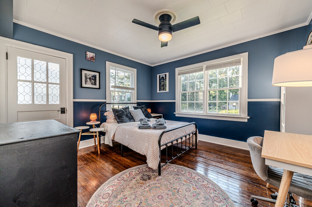 *ROOM RENTAL* This beautiful large historic home is recently renovated and fully furnished with private bathroom! The blue unit features a full sized bed, dresser, closet and desk in unit. The main house has over 3000 sqft of shared living space. The kitchen is remodeled and features new appliances, even a dishwasher. The stove has air fry as an option also! Inside the doorway is a sprawling living room with large comfy couches and a custom piano dry bar. Off the main living room is a cozy sunroom to enjoy the Carolina weather. The dining room features a large wooden table with enough space to seat everyone! Upstairs is a cozy media room ready for the best movie nights. With a massive 80in smart tv and a modern surround sound with a old timey twist. There is a full sized washer/dryer in the home. All bedrooms feature ceiling fans and keyless entry locks for privacy. Rent includes all utilities and high speed internet.