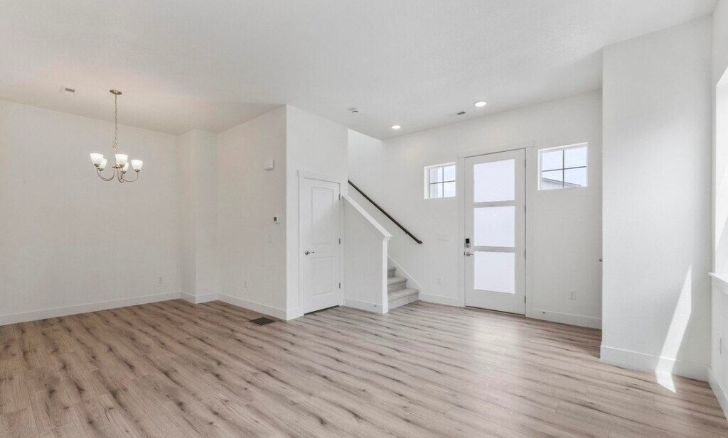 This BRAND NEW beautifully designed 1,739 sq. ft. paired home offers 3 bedrooms and 2.5 bathrooms, providing the perfect balance of space and comfort. The open-concept main floor includes a great room, dining area, half bath, and a modern chef-inspired kitchen with quartz countertops, a gas range, brand new Whirlpool refrigerator, upgraded cabinetry, and ample storage. Just off the kitchen, enjoy a large 19’ x 10’ covered patio overlooking the private fenced yard—ideal for entertaining or relaxing outdoors. Upstairs, the owner’s suite features a private ensuite bath with dual vanities and an oversized walk-in closet. Two additional bedrooms, a full bath, and a conveniently located laundry room with brand new washer/dryer complete the second floor. Additional features include a 2-car attached garage and access to all of the amenities within the desirable Trailside community. Pets will be considered on a case by case basis. We do not allow large dogs or any pet that heavily sheds. If approved, there will be a pet deposit required.