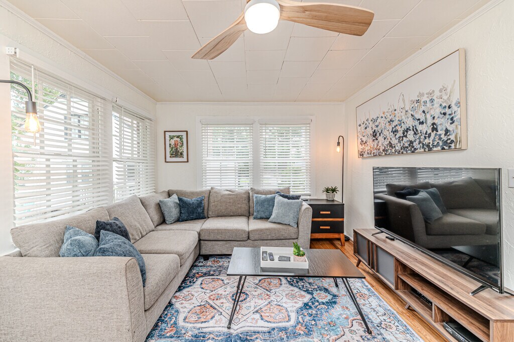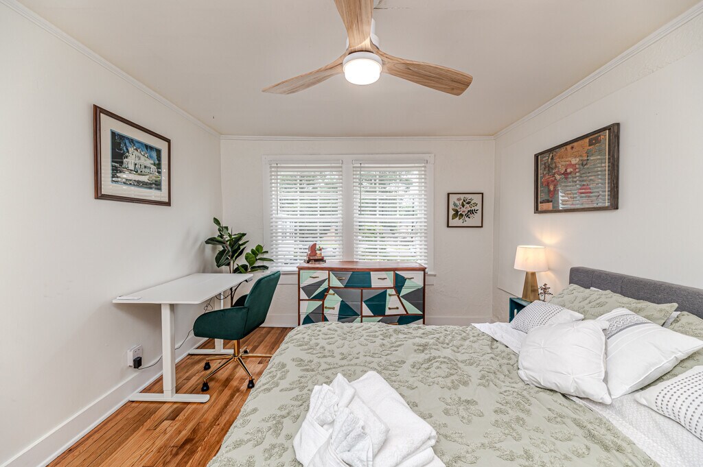 *Fully Furnished* Whole property is available to rent also. This is a newly renovated detached apartment in historic downtown Sanford. The detached apartment has two 1-bedroom apartments each with private living rooms. The living rooms feature a couch, 55in smart tv and eating area. The bedrooms have a queen/full sized bed, dresser and nightstands. Each space has a standing desk as well. The kitchen, bathroom, washer/dryer and deck are shared spaces with the upstairs unit. The bedrooms have individual code locks to protect privacy. If multiple listings are available, the entire home/apartment can be rented for a discount(inquire for further details). Rent includes all utilities, high speed internet and pest control services. The lease terms offered are 3, 4, 6, 9, and 12 months. Due to the short term nature of our guests stays, viewings are only with an approved applications or income verification. 3D tour available on our website: LikeItsOurOwn dot com. No HCVs. Credit, background and evictions will be checked.