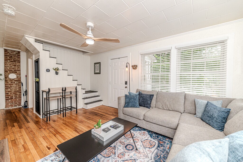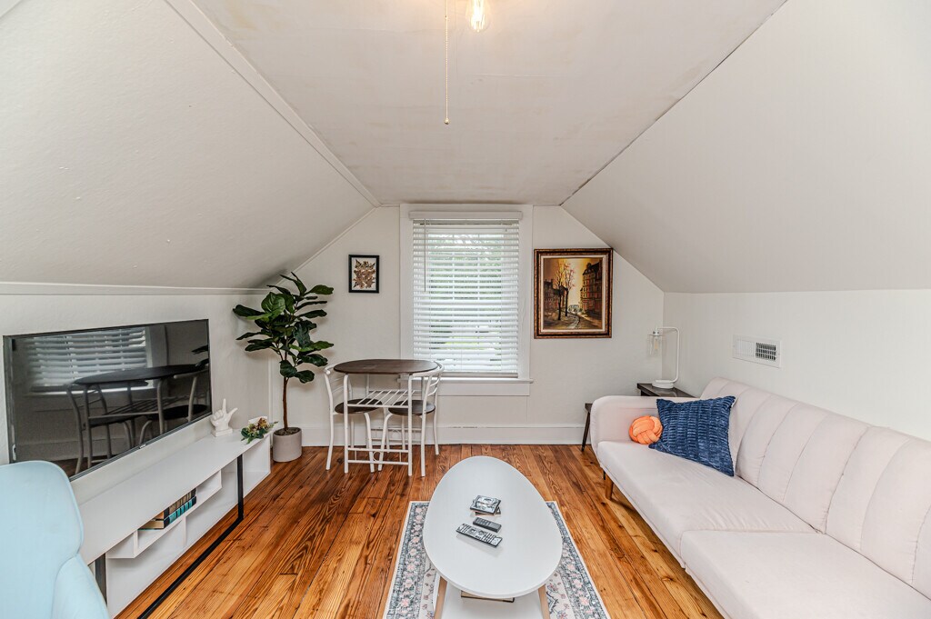*Fully Furnished* This is a newly renovated 2 bedroom, 1 bath apartment with two living rooms! This apartment is located in the historic district of downtown Sanford. It is detached from a beautiful home and tucked in the back at the end of the driveway. It is located above a garage and is two floors. Guests can enjoy their private entrance, and the ample parking this apartment allows. Upon entering you will find the first living room. Furnished with a large comfy couch, and smart TV. There is a small eating space as well. Past the living room is the bedroom. It features a queen sized bed with an open wardrobe, standing desk and dresser. The downstairs space also has a fully stocked kitchen ready for your stay! Across the hall is the bathroom. The bathroom features a shower with a rain showerhead. Upstairs is a second bedroom with a full-size daybed, closets and a dresser! Beyond that is the second living room! It also has a comfy couch, smart tv, standing desk, and a eat in dining space! Rent includes utilities, and high-speed internet. The lease terms offered are 3, 4, 6, 9, and 12 months. Due to the short-term nature of our guests, we allow viewings only with an approved applications or income verifications. No HCVs. Credit, background and evictions will be checked.