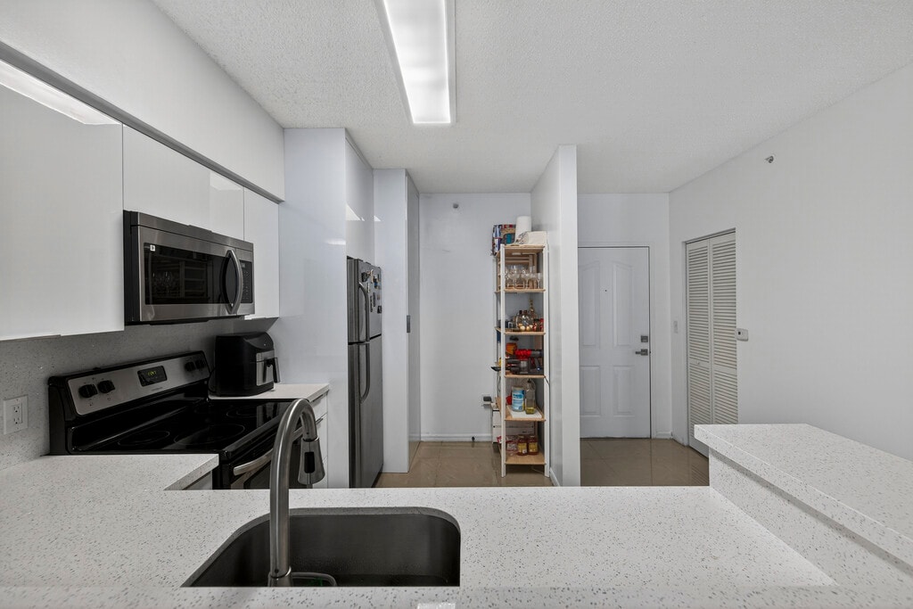 Completely remodeled and move-in ready, this bright and modern 2-bedroom, 1-bath rental offers style, functionality, and convenience in the heart of the Miami Airport area. Located on a high floor in a secure, amenity-rich community, the unit features an open-concept layout with sleek finishes, updated flooring, a contemporary kitchen, and expansive windows that bring in great natural light and sweeping views. Enjoy the convenience of a washer and dryer inside the unit, spacious living and dining areas, and a layout that balances comfort and flexibility. Both bedrooms offer ample closet space, and the fully renovated bathroom is clean and modern. The building includes an impressive lineup of amenities: a fitness center, spa, clubhouse, sauna, game room, boat docks, kayak launch, 24/7 security, and surveillance cameras. It’s a full-service lifestyle at your doorstep. Ideally located near major highways, shopping, dining, and just minutes from the airport, this unit is perfect for anyone seeking a stylish, low-maintenance rental in a central location. Showings after work hours during the week, or weekends preferred. Tenant occupied.