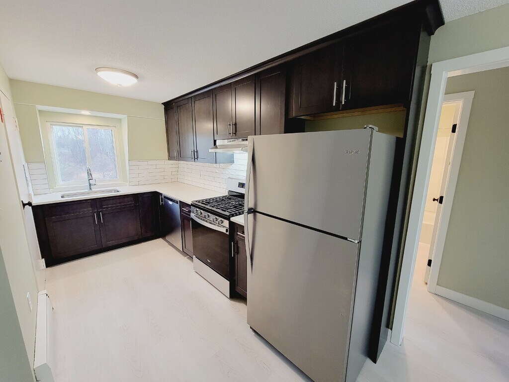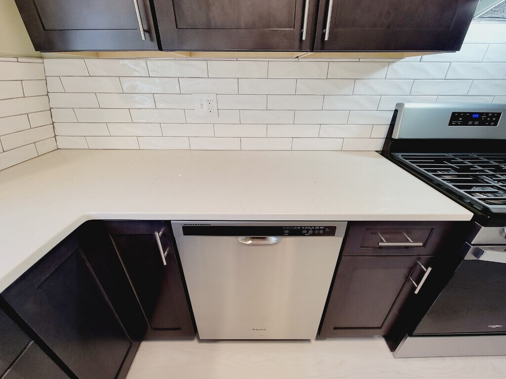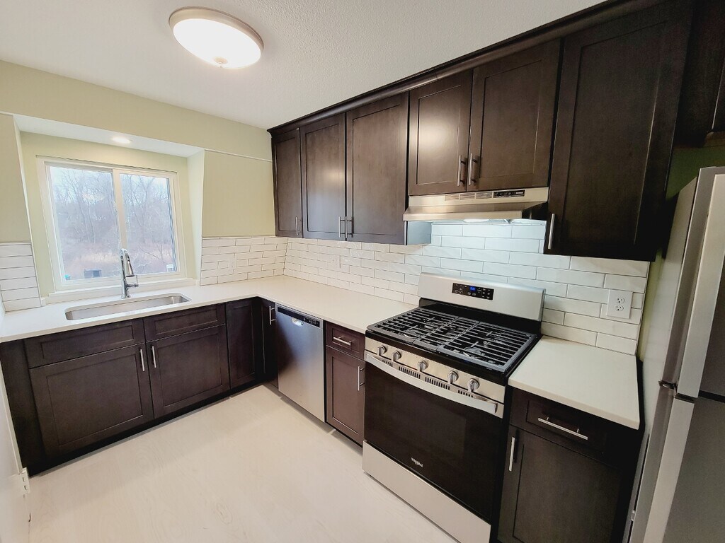 Unit 51 Evergreene Woods condo Cute and cozy fully renovated top floor 2 Bedroom apartment in desirable Wallingford CT. Solid wood kitchen cabinets to the ceiling with crown molding, tile backsplash, 5 burner gas range/stove, dishwasher, fridge with glass shelves, all SS appliances. Quartz countertop with huge undermount sink and kohler hand spray faucet. New bathroom with tile surround and kohler shower trim. All new craftsmen style solid core doors, freshly painted, new flooring. Stackable Washer dryer hookups, gas dryer only . No utilities included, tenant pays water. 1 cat ok. Gas heat and hot water. Ready for January 1st 2026. No smoking, full background and credit check required. First and last months rent plus 1 month security due prior to move in.