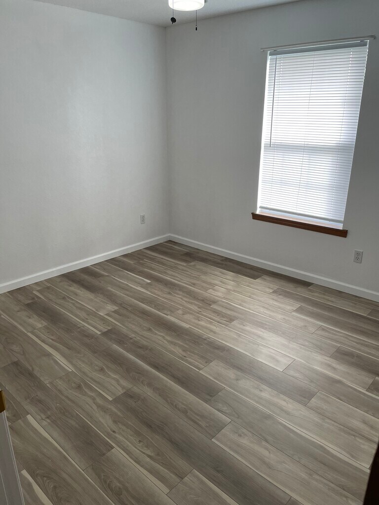 One bedroom ground level apartment with easy access from parking area. Washer and dryer hookups. Large grass common area backyard.