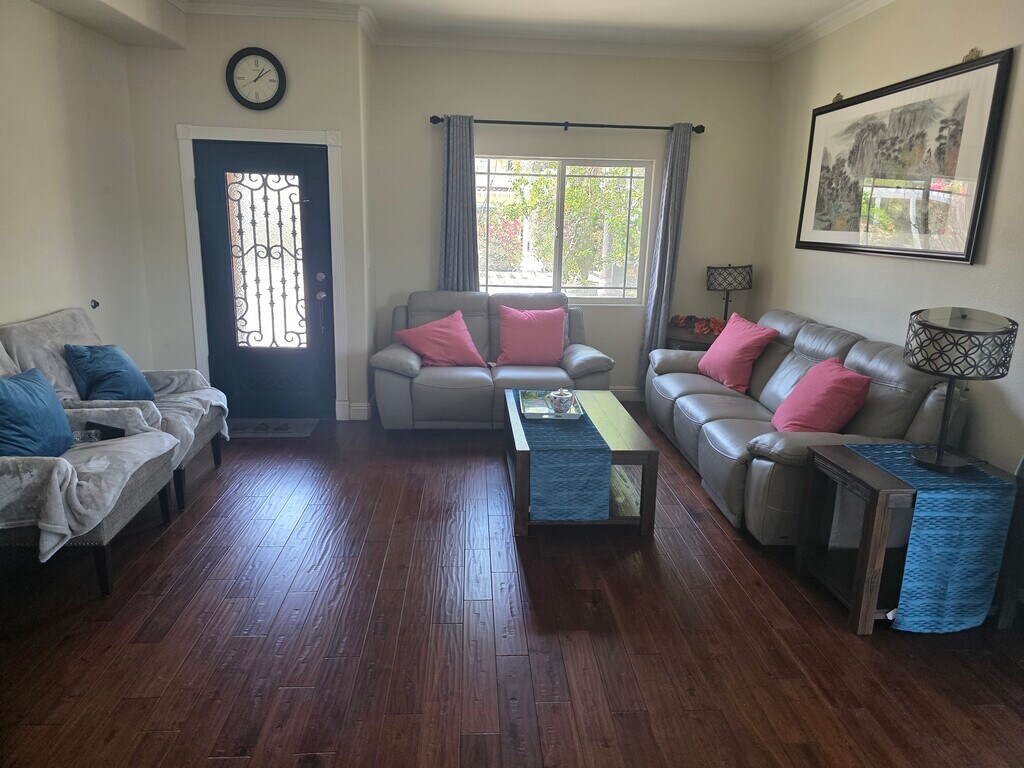 Fully Furnished & Move-In Ready spacious single-family home (over 3,000 sqft) with 3 bedrooms plus an office and 4 full bathrooms available for midterm rental (6 months). We may consider alternative rental period and based on lease duration and season rate may vary. No corporate housing or any third-party leasing company please. The home includes 10-foot ceilings and wood flooring throughout the living and dining areas. The oversized kitchen opens to a welcoming family room with a fireplace and direct access to a paved backyard and patio. Additional features include a three-car garage plus guest parking. All bedroom is upstairs including a large primary suite with dual sinks and a jacuzzi tub, along with two additional en-suite bedrooms and an office. Each bedroom features a private bath and large closet. A second-floor laundry room adds convenience. There is a fully bath downstair. Please include a brief introduction with your income, credit profile, number of occupants, desired lease term, and any pets when inquiring. Excellent credit and verifiable income required. Kindly do not disturb current occupants or neighbors.