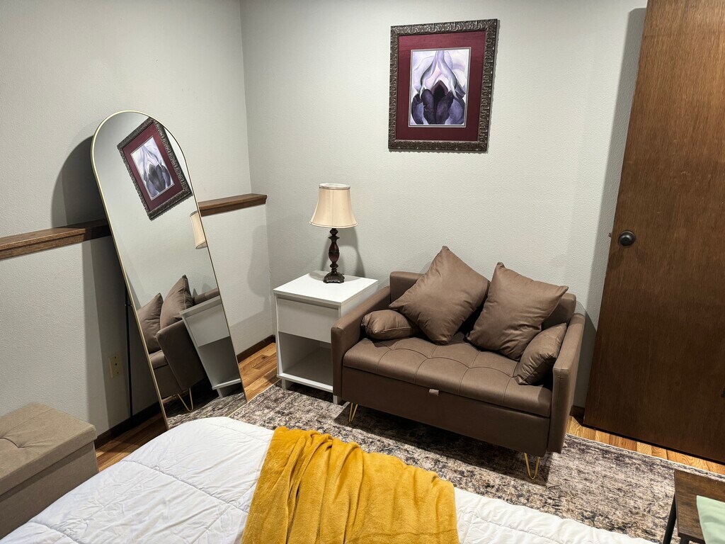 Beautiful daylight basement unit, fully furnished, all utilities and cable included, private access to attached garage, washer and dryer in unit (shared with upstairs owner). Pets OK, fenced yard with hot tub. Quiet, safe residential area. Near major hospitals.
