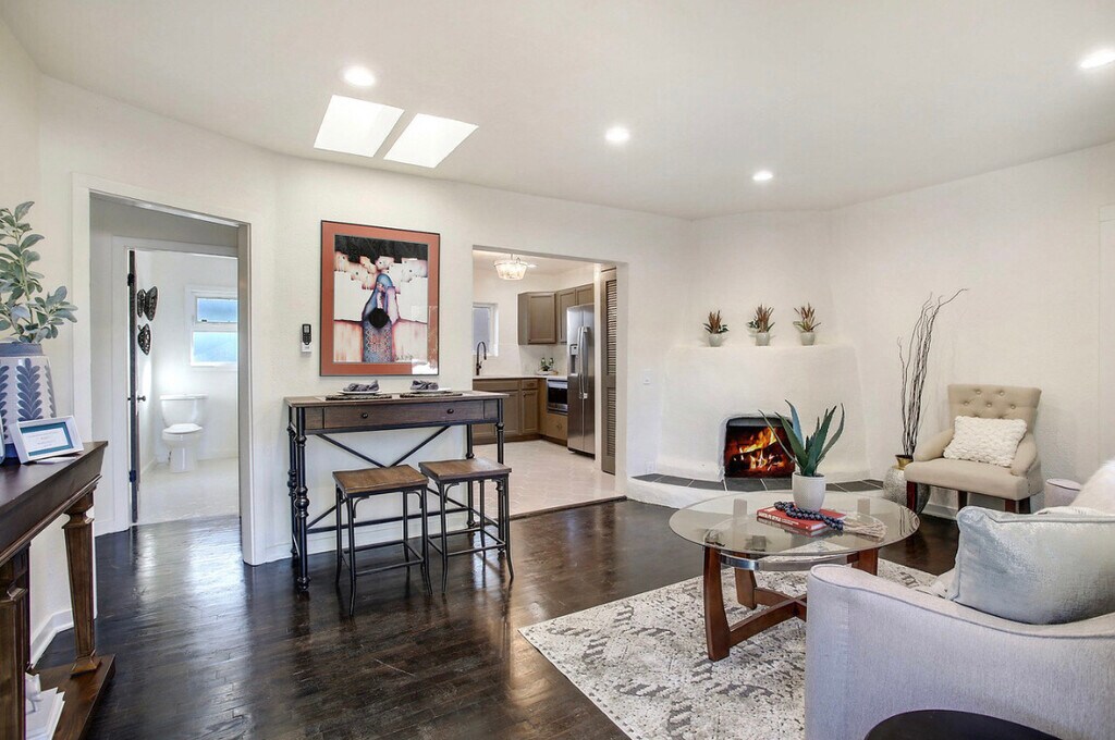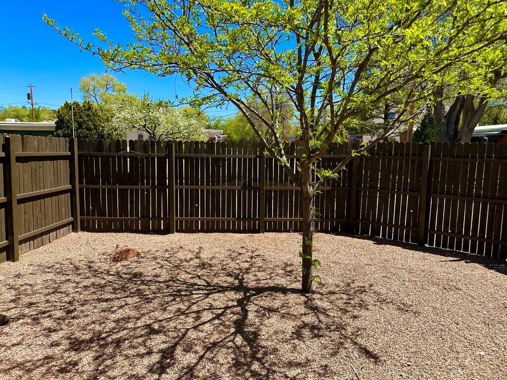 Unfurnished long term lease (1 year) Prime downtown location Walking distance to Santa Fe Plaza & Railyard Santa Fe adobe style, fully remodeled Wood burning kiva fireplace Hardwood flooring Quartz countertops Stainless steel appliances Stackable washer/dryer Heat/air mini splits Private front yard Large backyard with pergola and fire pit Storage shed included BBQ and patio furniture included Single family home with attached casita Casita is occupied One off-street parking space included Utilities included - gas, electric, water Gardener included Pest control included