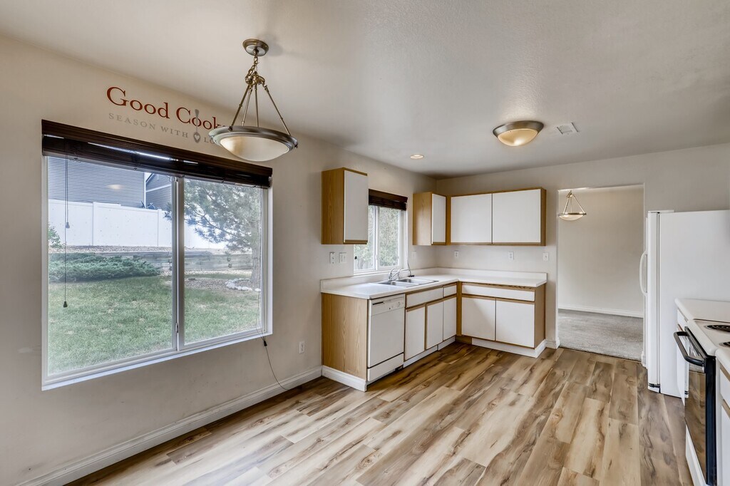Mint condition. 3 big bedrooms, 2.5 Bath, Living Room, Dining, Bonus Room. Huge primary bedroom with walk-in closet and full bath; Big, bright kitchen with lots of white cabinets. Lots of counter space and big breakfast area. Large, shaded backyard with sprinklers and tile patio. New paint and flooring.Two car garage with opener. Newer air-conditioning, furnace, water heater and blinds. New tile roof, and front door with window. Covered front porch. Refrigerator, stove and new dishwasher and garbage disposal included. New laminate flooring in kitchen and living room. Walk to school, golf course and bus. Quiet tree lined street. 4 people max. Well trained small to medium sized dog or cat ok. Denver license number is 2025-BFN-0022830. ALL adults must make application and pay $20.00 processing fee for Credit, Criminal and Eviction History. Will call last 2 managers for references. 2869/ month, 2869 Security Deposit at signing. Tenant pays utilizes except owner pays for trash and recycling. Show any time.