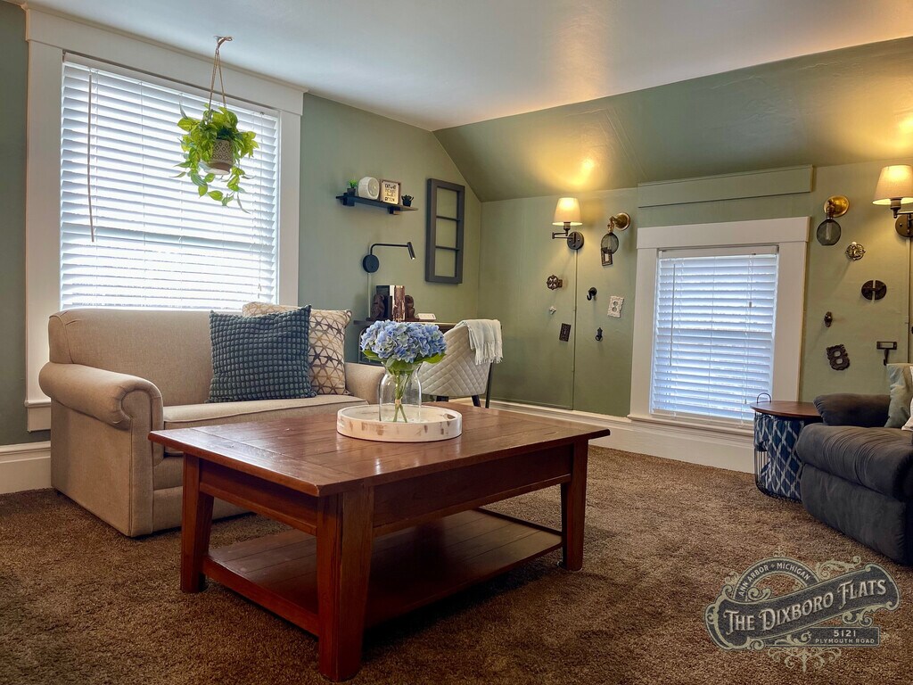 Welcome to our charming fully furnished one-bedroom upper floor in of the historic Dixboro Flats. This upper flat is nestled in the heart of the picturesque Dixboro and is just a stone's throw away from the prestigious University of Michigan, downtown Ann Arbor, Eastern Michigan University, and other surrounding areas. Our fully renovated late 1800s residence offers a perfect blend of historic charm and modern comfort for an unforgettable stay. Spacious Living Areas: Enjoy open and airy living areas perfect for relaxation and socializing. Comfortable Bedrooms: Unwind in our cozy bedroom, featuring a memory foam queen bed, and plush bedding to ensure a restful night's sleep. Fully Equipped Kitchen: Embrace your inner chef in our kitchen Ideal for preparing meals or enjoying takeout from local eateries. Access to the entire upper level of the home. Includes a cozy living area with two couches that feature memory foam pull-out beds, 1 bedroom with queen bed, two separate office spaces, a kitchen, and a full bath. Proximity to Universities and Hospitals: Located minutes from the University of Michigan campus and hospital, Eastern Michigan University, and St. Joseph Ann Arbor Hospital. For those seeking a productive stay, we provide a dedicated workspace equipped with high-speed Wi-Fi, creating an inspiring environment for work and study. Immerse yourself in the rich history of Dixboro. Experience the character and charm of a bygone era with all the modern conveniences you need. We are just a few steps away from the local favorite, Moonwinks Cafe and a one-minute drive from the famous, modern luxury eatery destination, The Dixboro Project. During the summer months enjoy the local farmers’ market for a wide variety of local flare. From cozy cafes to world-class eateries, our home is surrounded by Ann Arbor's vibrant culinary scene. Explore an array of cuisines, flavors, and atmospheres just minutes away.