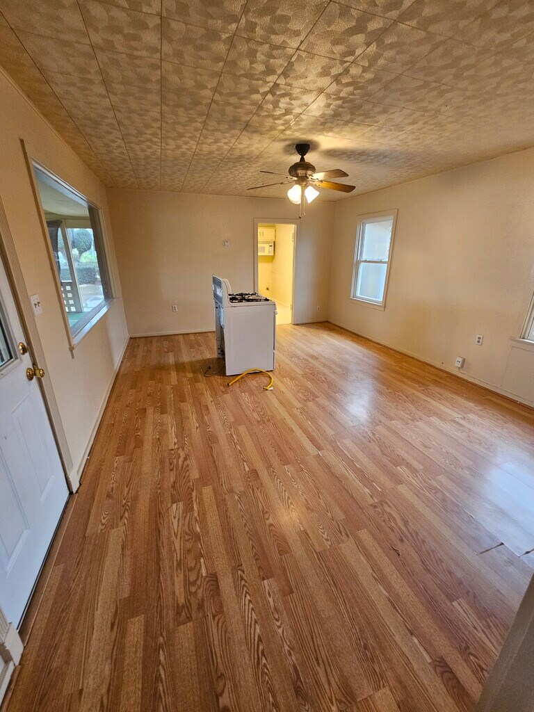 this 2 bedroom , 1 bath property offers 830 sqft of living space. house has large porch , kitchen is larger size, with separate laundry area. ceiling fans in bedrooms.