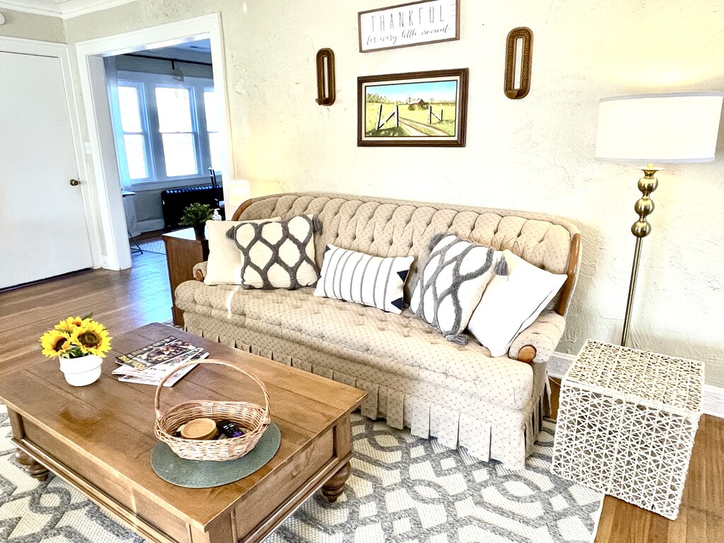 Fully private duplex unit and FURNISHED with all utilities included. The perfect mid-term rental for enjoying city life. If you appreciate vintage and eclectic, chances are you'll enjoy your stay! Staying here is like a visit to Grandma's house with flair. Great, central location in the city - near many of our area hospitals for traveling healthcare professionals! Nightlife and fun areas of the city within 5-10 min drive. The Rockhurst University campus is across the street. Pricing is for single-occupancy. $100/month for each additional person. 1 month minimum. For fastest response time on inquiries please email or call with your desired rental dates and descrip of your pet. -Private entrance with shared basement and backyard. -Two bedrooms and 1,250 sq ft make it ideal for double occupancy or for the person that just likes to have room to spread out. -Large TV in living room, plus Roku TVs in each bedroom. -Master includes king bed / 2nd bedroom includes queen bed. -Coffee bar includes Keurig k-cup machine, traditional 12 cup coffee maker, espresso machine, grinder, flavorings, tea, etc. -All utilities included (no cable TV, but we have Roku TV remotes). -This is a 2nd floor unit...you enter the private entrance and go up a flight of stairs to reach the apartment. -Laundry is in the shared basement. -Shared, fenced backyard. -Free street parking. Empty lot next door with a driveway that past tenants have used without issue. -Security Deposit is $500. Pet Deposit is $100/pet. All deposits are refundable after move-out. -$175 cleaning fee due upon move-in. Monthly pet rent is $25/pet. $150/month for each additional occupant. -First & last months' rent prorated based on move-in/move-out dates. Our ideal new tenant will have respect for a peaceful environment. Although this property is located on a busy street the bedrooms are in the back, and it tends to be pretty quiet for sleeping. We love old houses and this one is circa 1920s. Expect the floors to creak, cabinet doors that don't always shut perfectly, and original tile & tub in the bathroom. If you appreciate vintage character, we think you'll enjoy you're stay! We comply with all Fair Housing Regulations and city ordinances, and we are committed to KC Crime Free. We do ask all applicants 18 yrs and over to complete an application and screening which includes credit/background reports, rental and income verification. You need to be in good credit standing to pass our screening criteria. No smoking inside & no illegal substances.