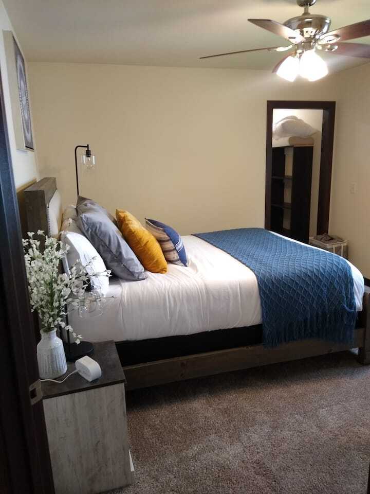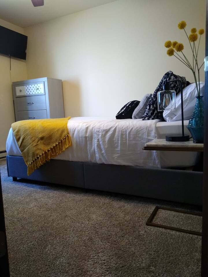 FULLY FURNISHED! * Walking distance to downtown Eau Claire * Walk to Phoenix Park that sits along the Chippewa River * Comfortable Beds! * Lots of pillow options. * One walk-in closet! * 32 inch smart TV in each bedroom * Custom fit shades to offer increased darkness * Fan! * Peaceful Breakfast nook * Living room offers a large sectional with a 55 INCH SMART TV! * FULLY STOCKED kitchen down to a personal sized AIR FRYER! * Stackable washer and dryer We will start you off with some cleaning supplies, paper goods and toiletries. You will be in charge of for replenishing these items after these initials are exhausted. YOUR HOME AWAY FROM HOME!!!