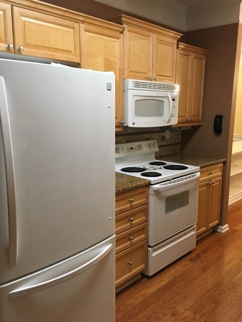 Spacious and quiet - and one of the very few condominiums for rent in the gated Villages of Devinshire, this condo is perfect for a single parent, a relocating professional, or seniors looking for a ground-level entrance home near their grandchildren. The updated and beautifully appointed 2 bedroom/2 bath "flat" has plenty of Walk In Closet space, a Home Office Nook with Built In Bookcases, and separate Laundry Room (with optional Washer and Dryer). It has Hardwood Floors and a Designer Kitchen with Granite Bar and Countertops and Tiled Back Splash. The large sun-lit floor plan has 9-foot ceilings with Dining and Breakfast Room that’s been tastefully mirrored furthering its open feeling. The large primary suite’s bath has a Double Sink Vanity and Garden Tub Shower. There are Sprinklers throughout and a built in Security System - saving renter's insurance. The Attached Two Car Garage with Electric Openers has ample space for storage and leads directly into the kitchen. With more than 1,300 sq ft of living space, there's also a 700+ sq ft Covered Deck with Ceiling Fan overlooking the wooded nature trail. Appliances include Washer and Dryer, Dishwasher, Self-Cleaning Electric Oven/Range/Cooktop, Electric Water Heater, Garbage Disposal, Microwave, and Refrigerator. Located at 13100 Deerfield Parkway off of Windward Parkway, the gated condominium community’s clubhouse houses a gym, large swimming pool, children’s playground, discovery trails and lighted tennis. It's a but a short walk to Super Target and Verizon, and Home Depot, Starbucks are around the corner. What's more, it's very close to Avalon and Alpharetta's shops and dining. Schools nearby are Manning Oaks Elementary, Hopewell Middle, Alpharetta High. There's even a MARTA stop across the street.