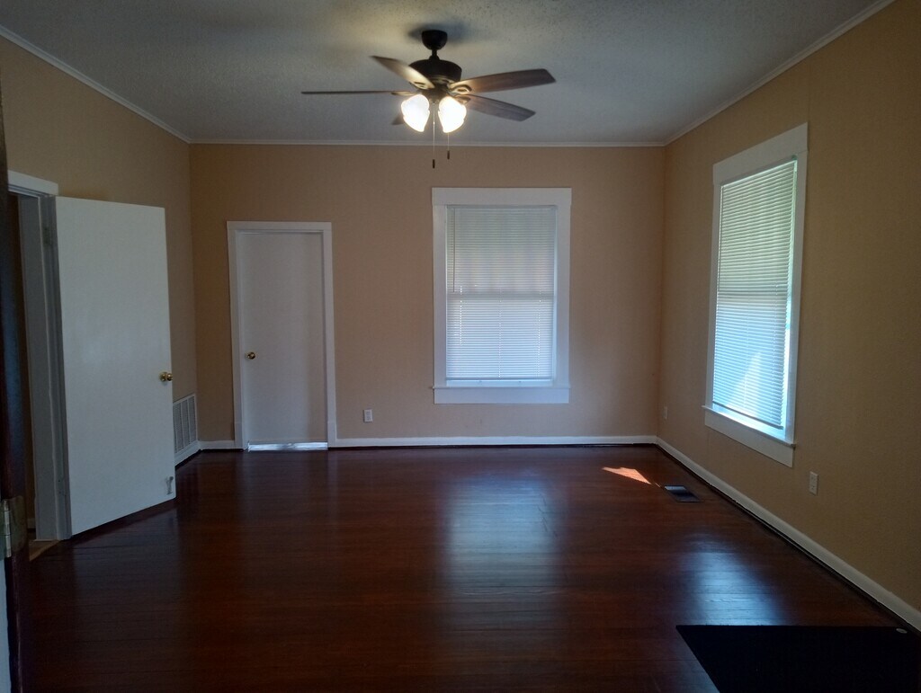 The nicest house in town in the price range. Newly refinished original wood floors, and freshly painted with new ceiling fans and siding. Den/dining room off of the kitchen could be used as an extra spare bedroom. Perfect for a small family, couple, or single renter. Vintage bathroom with old America style heavy duty bathtub that could double as a bunker for surviving a nuclear blast, a tornado, or zombie apocalypse, and a toilet that doesn't give an apologetic whine when flushed, but will suck a hole in the ozone layer with its power. No appliances provided as is, if you already have your own. Appliances could be provided upon request. There is a 60 ft concrete driveway for parking, with a large fenced backyard and additional patio/picnic area. All yardwork is included in the rental price, so you get the bonus of a private house and yard, rather than an apartment or duplex, and without the hassle of dealing with yardwork. Centrally located less than 1/2 mile from the local Elementary, Jr High, and High Schools. Close to major upscale shopping areas such as Dollar Store and Wal-Mart. :D American owned and locally managed.