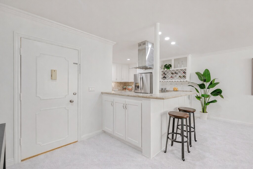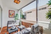 The San Vicente Villas is a unique and very desirable mid century building tucked in the best part of Santa Monica just blocks to Ocean Ave, Pallisades Park, and the best sunset gazing experiences. Open floor plan with a large enclosed patio makes for easy entertaining options in this perfectly laid out unit. Recessed lighting throughout, in-unit laundry and recently remodeled kitchen and bathrooms make this 2 bedroom 1 bathroom condo a perfect home for anyone who wants to enjoy the Santa Monica living lifestyle. Located in the Roosevelt Elementary School area, the well kept building offers a sparkling heated pool, an oversized rec room with a full gym, two indoor secured parking spots, and plenty of additional storage space. Unit is available both furnished and unfurnished. 13 months term minimum.