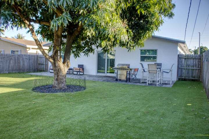 Welcome to this beautifully updated home offering impact windows, tile and luxury vinyl flooring throughout, and a modern eat-in kitchen. Freshly painted interiors, recessed lighting, and a spacious living area create a bright and comfortable atmosphere. A designated dining area can also serve as a second living space. Enjoy the convenience of a one-car garage and circular driveway. Low-maintenance artificial turf means no mowing, while the fully fenced backyard provides privacy and features a mature mango tree—perfect for relaxing or entertaining. Ideally located near shopping, dining, schools, and major highways with easy access to everything Boca Raton has to offer. Listed by: Zhemukhova