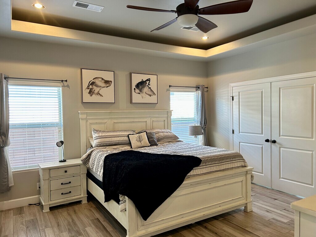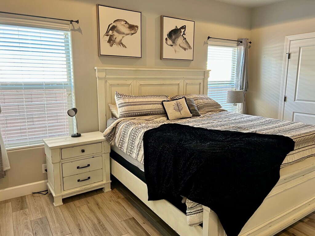 This modern home offers generous space and impressive amenities, featuring an open floor plan, high ceilings, and oversized sliding glass doors that create a seamless indoor–outdoor living experience—perfect for entertaining. The kitchen boasts a spacious island for casual dining, a cozy breakfast nook, and a formal dining room for special gatherings. A bonus office was thoughtfully added as an extension of the primary bedroom and includes direct outdoor access, providing a private and functional workspace. Another standout feature is the separate second garage located on the opposite side of the home. This space is fully insulated and equipped with windows, running water, and a mini-split system for heating and cooling. Previously used as a hair salon, it offers incredible versatility and could easily serve as a gym, studio, guest space, or additional living area. The backyard is well-sized and includes an in-ground garden for gardening enthusiasts, a fire pit for relaxing evenings, a storage shed, and a sprinkler system. This is truly a special home located in a desirable neighborhood, offering comfort, flexibility, and exceptional potential.