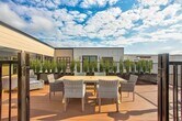 519 Broadway 201, Somerville, MA - a spacious corner one-bedroom, one-bath unit with a private patio. A luxury residential building in Somerville featuring modern design and top-tier amenities. This corner unit boasts a gourmet kitchen with waterfall quartz countertops, GE Café stainless steel smart appliances, custom cabinetry, a built-in wine fridge, and hardwood floors throughout. It includes electronic shades, a Juliette balcony, and a large private outdoor patio—ideal for entertaining or relaxing. The open layout and floor-to-ceiling windows flood the space with natural light. Located opposite historic Trum Field, residents have access to five levels of upscale amenities, including a Skyview Observation Deck with panoramic views of the Boston skyline, a rooftop kitchen with event space, a fitness center, a coworking space, and a private screening room. Off-street parking and storage are available for an extra fee.