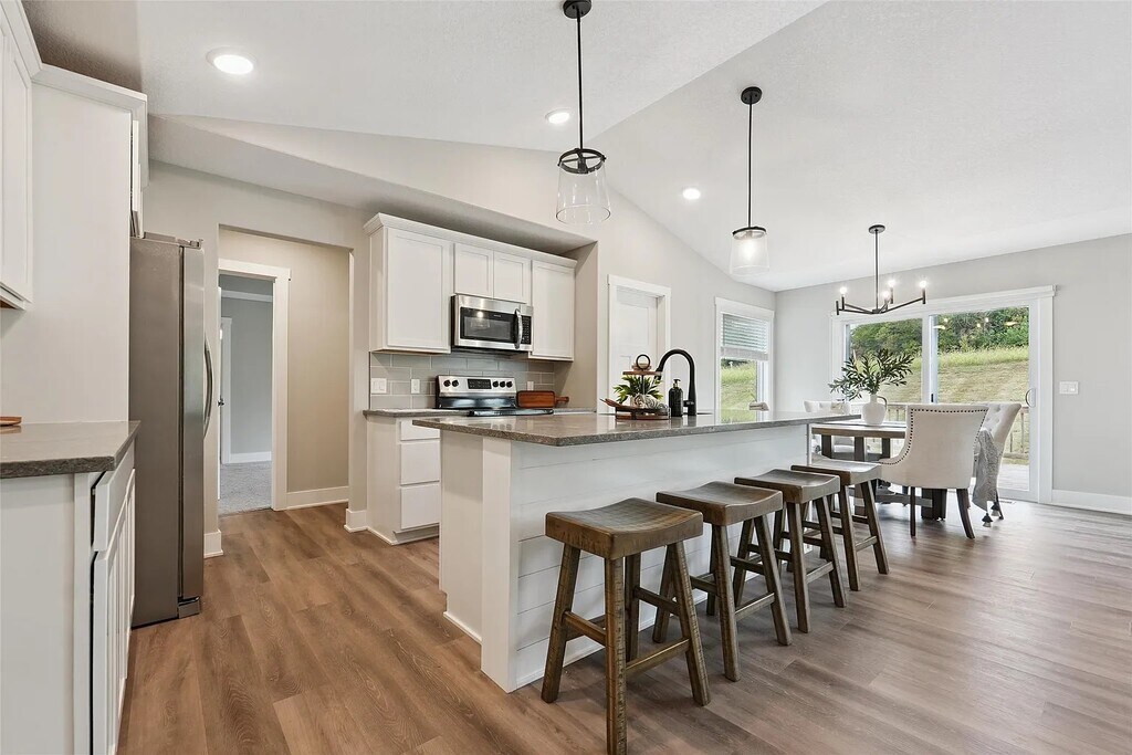 This split-bedroom floor plan offers the perfect blend of functionality and style. Enjoy an oversized Great Room with vaulted ceilings, luxury vinyl plank flooring, and expansive picture windows flooding the space with natural light. The kitchen is a chef's dream featuring a 7' center island, large pantry, and dedicated serving area perfect for entertaining. Retreat to your private Master Suite with a tiled shower and spacious walk-in closet. The finished lower level adds even more living space with two additional bedrooms, a family/rec room, and a wet bar for game nights or gatherings. Located in beautiful Polk City, you'll love the quick access to Ankeny and the West Suburbs, plus nearby biking trails, parks, and Saylorville Lake for endless outdoor enjoyment.