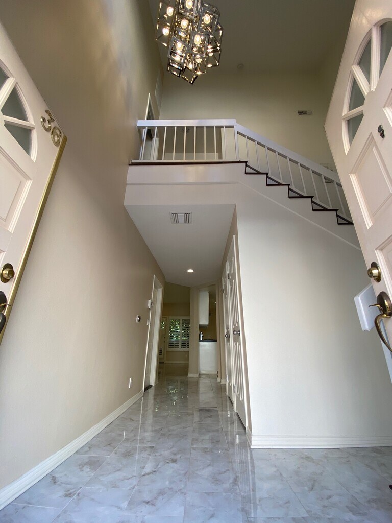 Great unit for lease inside Four Oaks town homes complex. Completely remodeled contemporary townhouse featuring hardwood and tile floors, plantation shutters, and top of the line materials. There is 24/7 guard-gated community, pool and a spa, nicely landscaped grounds with grass areas, and a clubhouse with an exercise room. This two-story townhome features a spacious leaving room with an updated fireplace that looks out onto a private, enclosed patio. The kitchen has Caesar stone countertops, stainless steel appliances, a double sink, plenty of storage space, and a breakfast area. Two huge bedrooms, each with walk-in closets, attached garage located on the first level, and a stackable washer and dryer in the unit. No smoking allowed. This lovely light and bright unit is totally remodeled with a large kitchen and new appliances, lots of closet space inside the unit. There is a Patio off of living room and dinning area with view of trees. There is a direct access without any steps from the garage towards the town house. Walking distance to Ventura Blvd, transportation, shops, restaurants, house of worships.