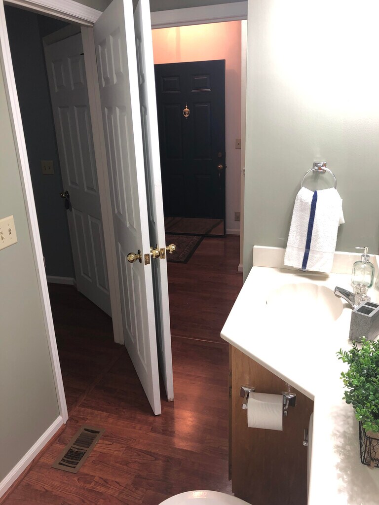 Hello - This listing is for a spacious condo that will be available for rent in Brentwood starting in October. The condo is very unique and has 3 levels, each floor has its own bedroom and FULL bathroom. That's 3 full bathrooms, one on the upper, one on the middle, and one on the lower level. The lower level is the master bedroom with an extra large bathroom. The lower level also has a separate private entry/exit with stairs that exit out the back of their own little wood patio. The condo is comfortable, and has 2 back decks (one main level, one lower level patio) that look into some nice woody area in the back. Private washer and dryer are located within the unit. The condo also has convenient built in shelves and a real wood burning fireplace. The tenant will also be given the pool key so they have access to the community pool facility. Rent is $1995 and we require a 1 month deposit. Standard 12 month lease term. We just had brand new floors installed in the condo, as well as updates in the kitchen. If you're interested or have any other questions, please feel free to contact me. Thanks - Jim