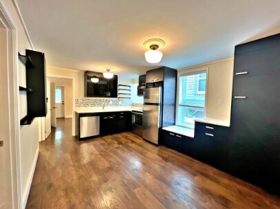 This is a beautiful bottom unit of a duplex near everything. It is an updated downstairs unit that is both spacious and inviting with the built in the charm of a seasoned duplex. The location combines a quiet street with quick proximity to MLK, Fremont, Mississippi and more. Just in the front door is a well laid out living space with large windows facing north. The kitchen adjoins the living space with a nice U shape counter space and bar top area. The first bedroom is a central cave of a space made for good sleeping. The back bedroom is larger and has backdoor access to a large shared patio and yard. The bathroom is central to the space with a small space containing the washer dryer. The property is quiet and high ceilings mean overhead sound is minimal. With windows all around, the unit has good natural light creating a cozy urban oasis.