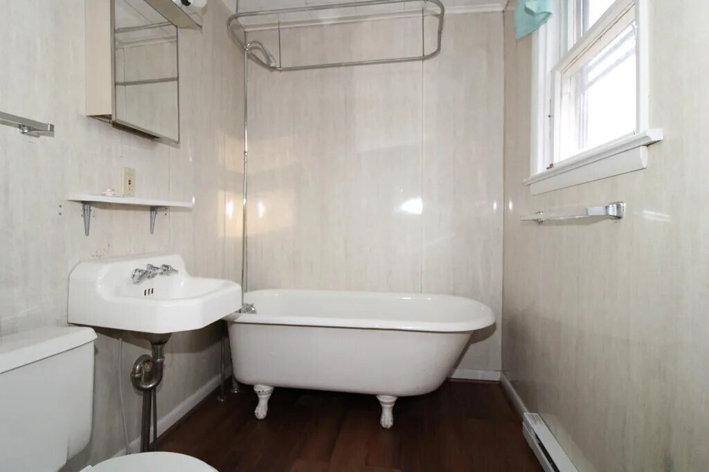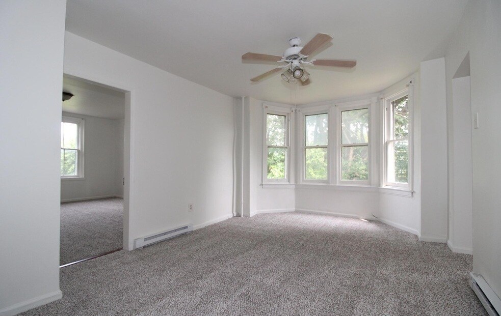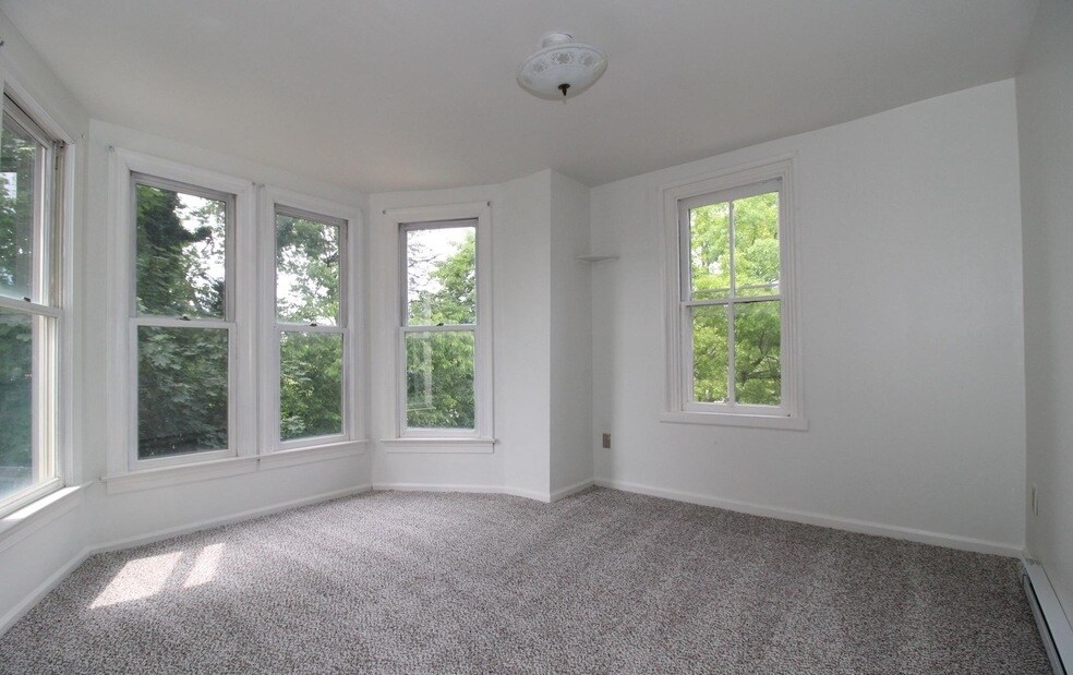 Very bright and airy 2nd floor 2-bedroom apartment in a two-unit converted house. Building faces City Park which is just across the street, 1 minute walking distance and apartment has all new floors, paint and baseboard heaters. There is only one other apartment in the building and they have their own separate access for privacy. The property has a driveway that leads from Virginia Ave to Summit Ave, with parking in the back. Tenants have use of a large yard.