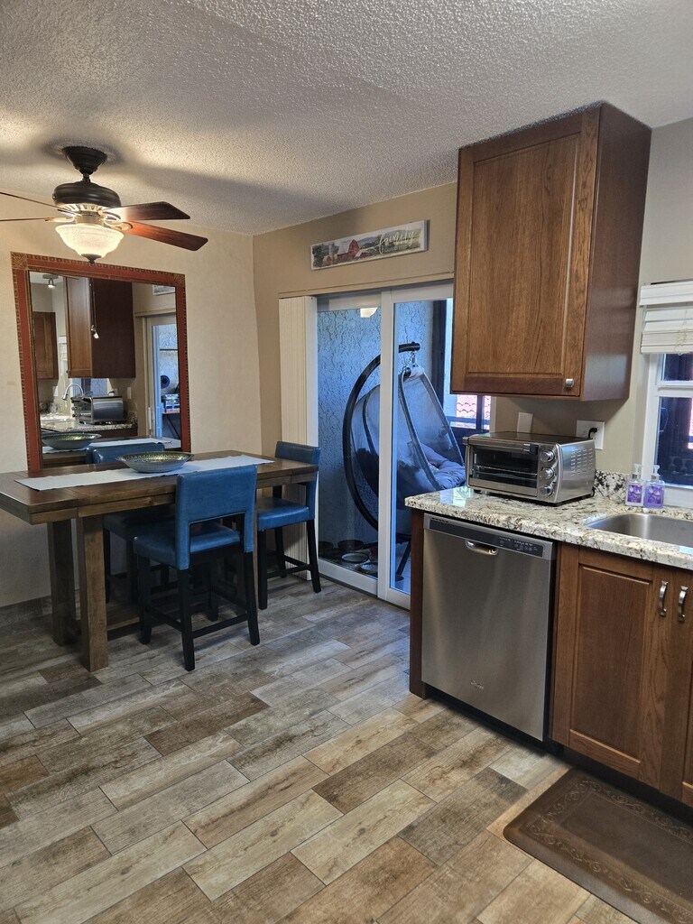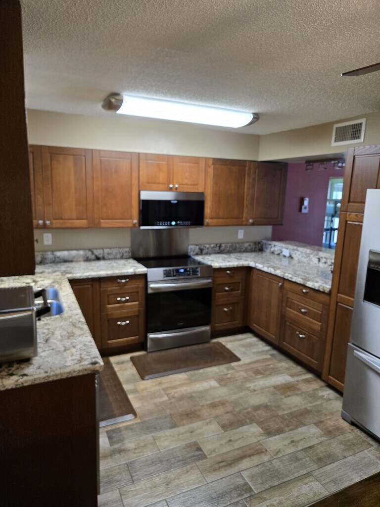 Beautiful 2 Bedroom, 1 Bath unit on second floor. Large updated kitchen with granite countertops. New stove and microwave. Enjoy a very nice A/C den area, pool view & hurricane proof windows. Washer and dryer in the unit. ALL impact windows, New AC, tankless water heater. This is the nicest apartment of its size in the complex. Gated community with wonderful amenities, 24 hours Security Guard at gate, 2 swimming pools, fully equipped fitness center. Convenient location less than 3 miles from the Lauderdale by the Sea beach, close to Wilton Manors, close to 95, private walkway to Publix, close to hospitals. HOA requires minimun 650 credit score. $150 association application fee. 1 Parking space, 2 People maximum. You can rent it fully furniture & equipped for $2,050. Available now!! rent: $1,900 1 year lease 2 month SEC DEPOSIT, 1 parking space, Wáter & garbage collection included No pets