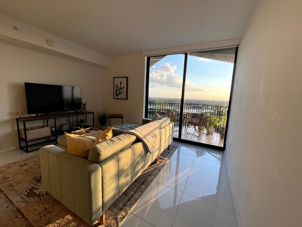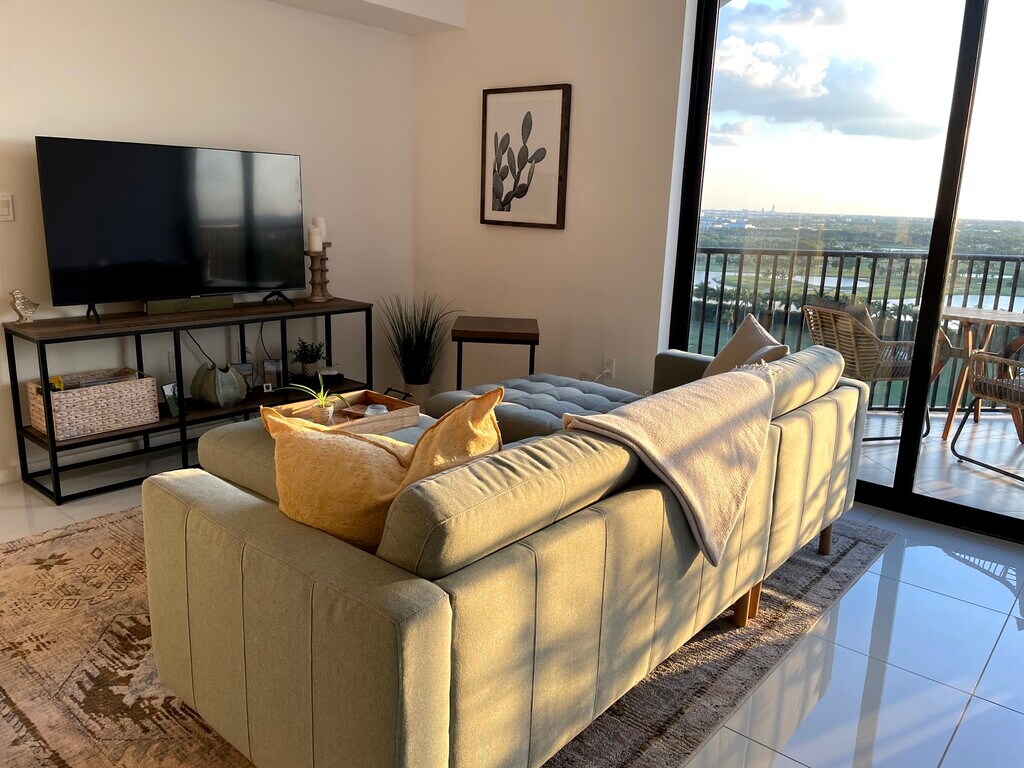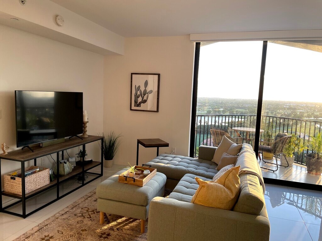 Stunning 1/1 + Den converted as a 2nd room furnished at 5252 Paseo. Leasing less than 12 months min 6 month Modern kitchen w/ stainless steel appliances, and stone counter tops. 10ft ceilings with exposed concrete and spacious private terrace with an open view to the Trumps Golf Course. Building has 24-Hour concierge and security, chic modern lobby, covered gated parking, rooftop swimming pool, state of the art fitness center, BBQ, and mini golf. Ground level restaurants and shops. Condo is located in the heart and soul of Downtown Doral, Doral’s neighborhood where modern architecture intersects a vibrant city culture. Steps away from Restaurants, Parks, near to the Miami International airport, Shopping's and more.