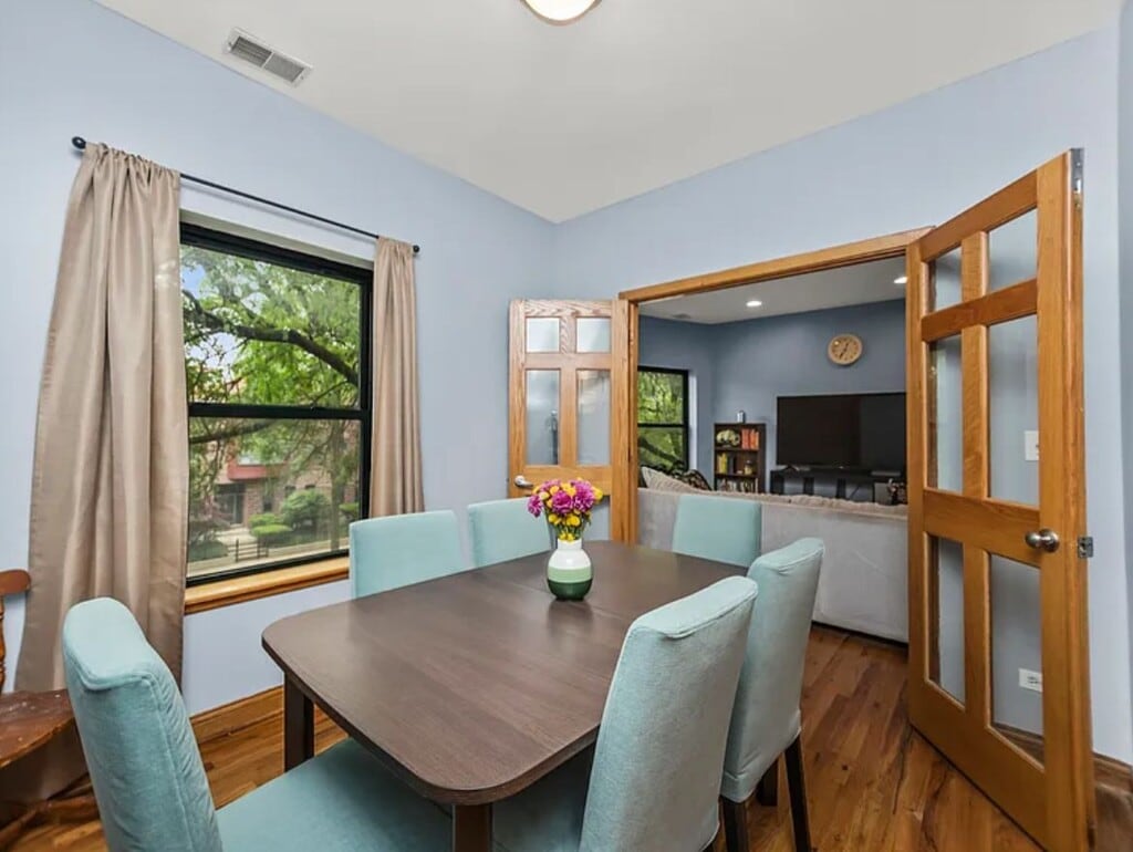 Private bedroom with Private bathroom for rent in a 3 bedroom 2 bath condominium. This is a great deal as owner will only occupy their bedroom once a month. Owner lives in another state and visits Chicago to see family and friends and would like to find someone reliable that can share and take care of the apartment. There is another bedroom that is being occupied by a very nice tenant that will stay for 9-12 months. You can meet her on zoom first then in person. This apartment is in the popular Hyde Park neighborhood within walking distance to the University of Chicago, a highly ranked university well known for its valuable research and strong academics. This condominium is well maintained and updated with hardwood floors and lots of natural sunlight coming in through the beautiful bay windows. The living and dining room is a combination open concept to entertain your guests comfortably. Kitchen has plenty of counter space and ample cabinets with dishwasher, oven, stove, and microwave. In unit laundry is available for your convenience as well as storage. Whole foods is within walking distance as well as, coffee shops, restaurants, bars, boutiques, bookstores and plenty more! Beautiful greenery throughout the neighborhood as well as on campus. Hyde Park is known for its world class museums such as Museum of Science and historic sites like the Robie House. You can also enjoy 57th street beach which is only a 10 minute drive away. Utilities will be a monthly flat fee. There is a move in fee of 400. Please text to schedule a viewing. Owner requires credit check and score of at least 620 and criminal background check. Graduate students need to provide proof of monthly stipend and offer letter.