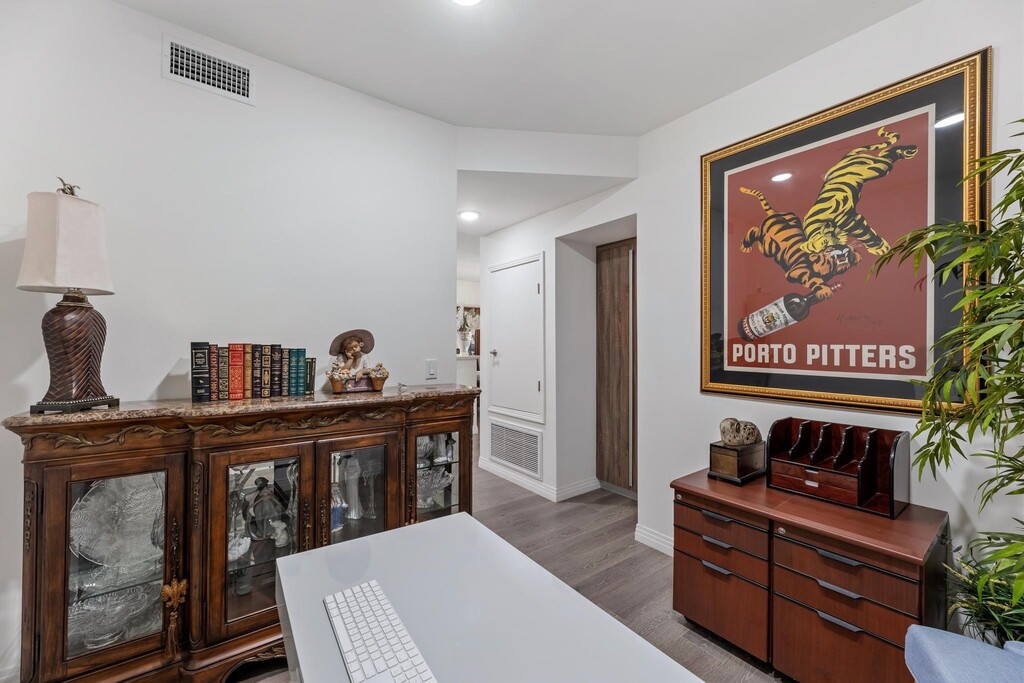 Discover your ideal home at La Valencia, where modern living meets sophistication. This exquisite condominium features three spacious bedrooms, two stylish bathrooms, and a flexible den perfect for your home office or creative pursuits. Located in the coveted Valley Village area, this residence, constructed in 2016, offers approximately 1,680 square feet of intelligently designed space with a seamless layout that emphasizes both comfort and socializing. Upon entry, you're welcomed by rich wood flooring and impressive high ceilings, creating an open and airy atmosphere filled with natural light. The kitchen is a standout feature, equipped with high end stainless steel appliances, sleek quartz countertops, and a contemporary tile backsplash, complemented by ample cabinetry and a generous breakfast bar for casual meals or entertaining guests. The primary suite serves as a tranquil escape, complete with a spacious walk in closet and a luxurious bathroom featuring dual vanities and a shower tub combination. Two additional bedrooms provide ample space for family, guests, or a home office setup. Enjoy added conveniences such as plantation shutters, a private balcony for outdoor relaxation, in unit laundry, and central heating and air conditioning. Living in this well kept building means you're just minutes away from an array of local shops, dining options, and entertainment. Embrace this opportunity to make this stylish and ready to move in residence your new home! One year lease, small dog is okay. Tenant is pays for Gas and Electric