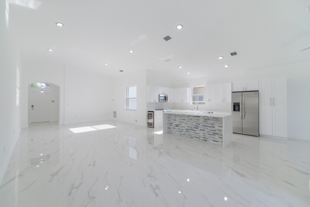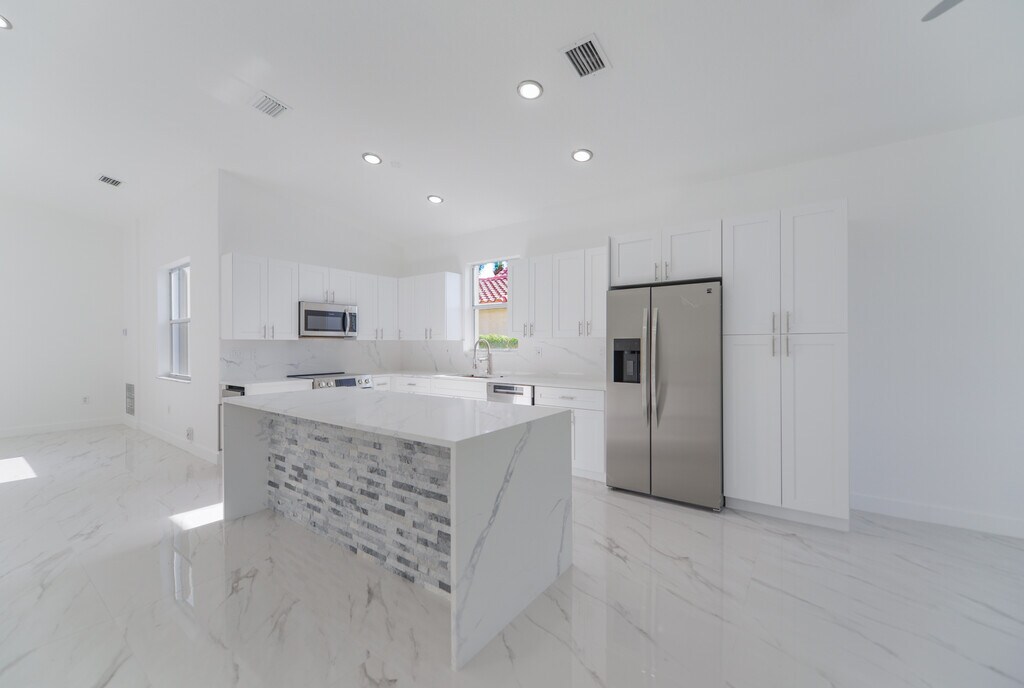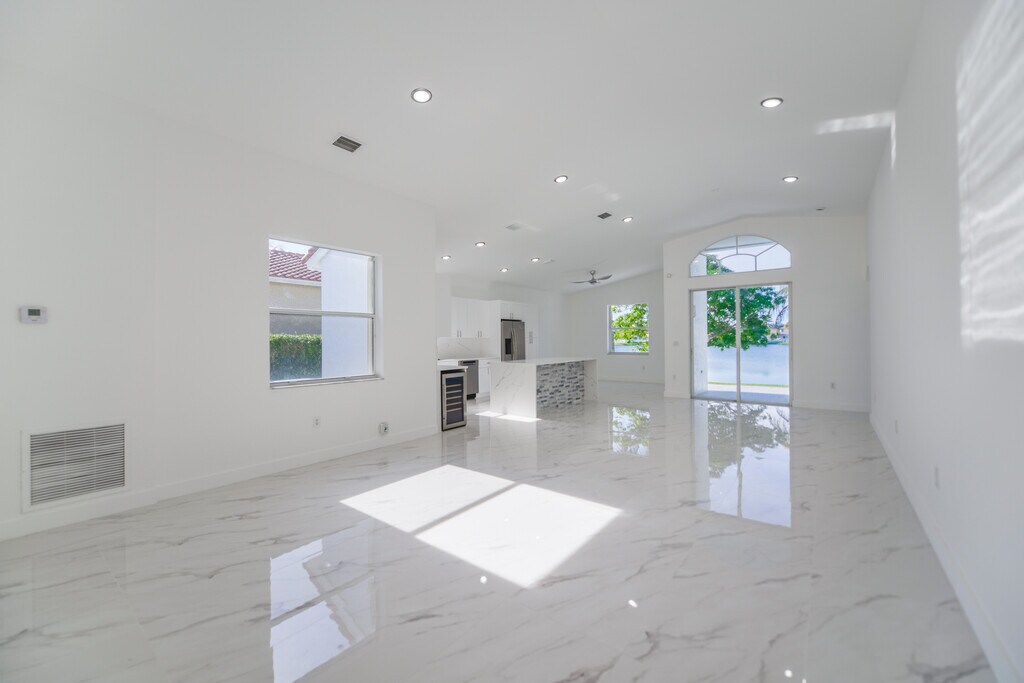 Discover this exquisite one-story, 3-bedroom, 2-bath waterfront home, fully renovated with modern finishes throughout. Step inside to soaring ceilings and a spacious split-bedroom layout. The bathrooms showcase distinctive designer touches, while the open-concept kitchen boasts brand-new appliances, including a wine cooler, sleek cabinetry, and elegant granite countertops. Expansive windows bathe the living areas in natural light. Relish the serenity of waterfront living with a large new patio and sweeping lake vistas, all in a prime location near excellent schools, shopping centers and more. A wonderful, gated community, don't miss this opportunity! #Claudiarivasrealtor #Pristinepropertymgmt