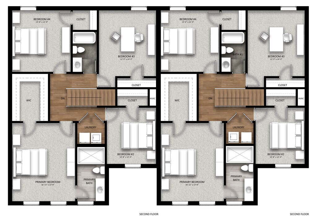 BRAND NEW CONSTRUCTION! Two story duplex with Ten ft ceiling heights on first floor and second floor. It has four bedrooms, 2.5 baths and two car garage, large primary bedroom with walk in closet and a roomy bathroom. Large family room open kitchen and breakfast area. Walk in Laundry area. Stainless steel appliances and granite tops.