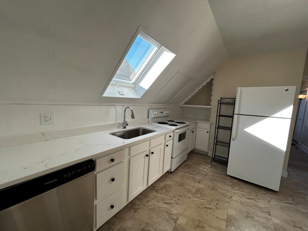 Great opportunity to live one block from Beverly's Waterfront! This 4 room 2 bedroom 1 full bath home has an updated kitchen with new quartz counters, new skylight, new sink, updated cabinets, updated flooring and decor. This top floor apartment also features an updated bath with new tile flooring, new vanity, updated tub shower with distant views of Beverly Harbor out the window! The two bedrooms feature new paint and new flooring along with one of the bedrooms having views of the harbor! Conveniently located to downtown Beverly and Commuter Rail this home comes with 2 car off street parking, common yard to enjoy BBQs and coin operated laundry in the basement. This is must see!
