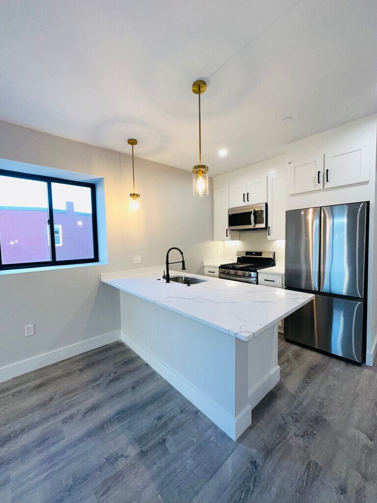 Newly renovated first floor unit awaits you! All you have to do is move in. New Everything! New roof, new floors, new bathroom, new In-Unit laundry! This unit is flooded with natural sunlight. The oversized windows really accentuate the high ceilings! Close proximity to the train, bus, beach, airport, and so much more. Utilize the nearby greenway and walk/bike to the booming waterfront where you'll find countless new restaurants. Enjoy cooking on your new gas stove! Pictures are from previous developers work and meant as a guide. Finishes might differ and developer reserves the right to make changes. Completion Fall 2025 (Dec 15 - Jan 1)